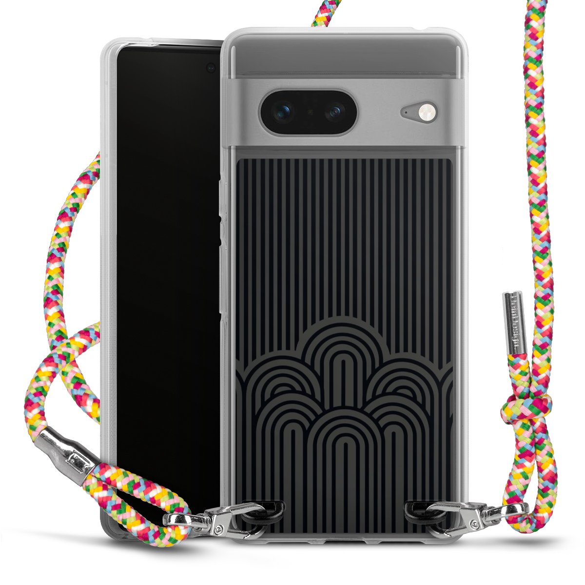 The flexible case is made from a highquality TPU material (thermoplastic Polyurethan). Thanks to its longlasting and break resistant characterisitcs, the case is flexible yet consistent in form and has a great grip and feel. The textile strap made from Polyester gives a chic yet casual accent allowing you to carry your phone like a bag or necklace - a practical gadget perfect for your next adventure. The textile strap is about 1.70 meters long and the length can easily be adjusted through the knots. Our Carry Case is available in Colourful, Mint-Camouflage, Very-Berry, Sahara-Sand and Sparkling-Neon. The ends of the textile strap are covered with metallic end caps to protect them against fraying.