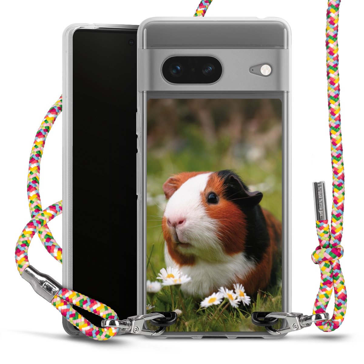 The flexible case is made from a highquality TPU material (thermoplastic Polyurethan). Thanks to its longlasting and break resistant characterisitcs, the case is flexible yet consistent in form and has a great grip and feel. The textile strap made from Polyester gives a chic yet casual accent allowing you to carry your phone like a bag or necklace - a practical gadget perfect for your next adventure. The textile strap is about 1.70 meters long and the length can easily be adjusted through the knots. Our Carry Case is available in Colourful, Mint-Camouflage, Very-Berry, Sahara-Sand and Sparkling-Neon. The ends of the textile strap are covered with metallic end caps to protect them against fraying.