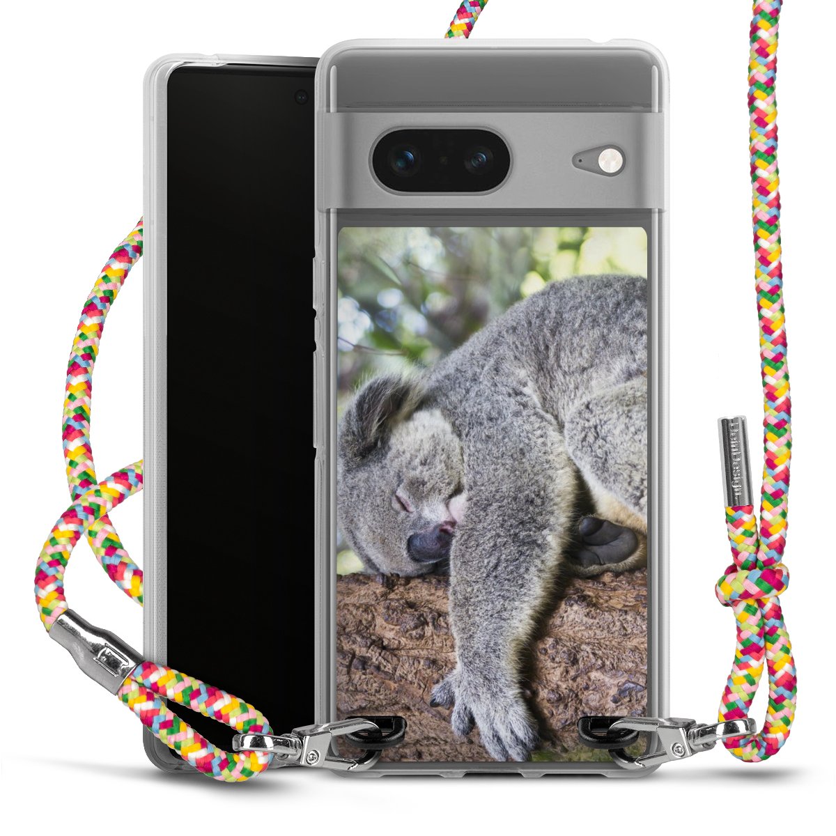The flexible case is made from a highquality TPU material (thermoplastic Polyurethan). Thanks to its longlasting and break resistant characterisitcs, the case is flexible yet consistent in form and has a great grip and feel. The textile strap made from Polyester gives a chic yet casual accent allowing you to carry your phone like a bag or necklace - a practical gadget perfect for your next adventure. The textile strap is about 1.70 meters long and the length can easily be adjusted through the knots. Our Carry Case is available in Colourful, Mint-Camouflage, Very-Berry, Sahara-Sand and Sparkling-Neon. The ends of the textile strap are covered with metallic end caps to protect them against fraying.
