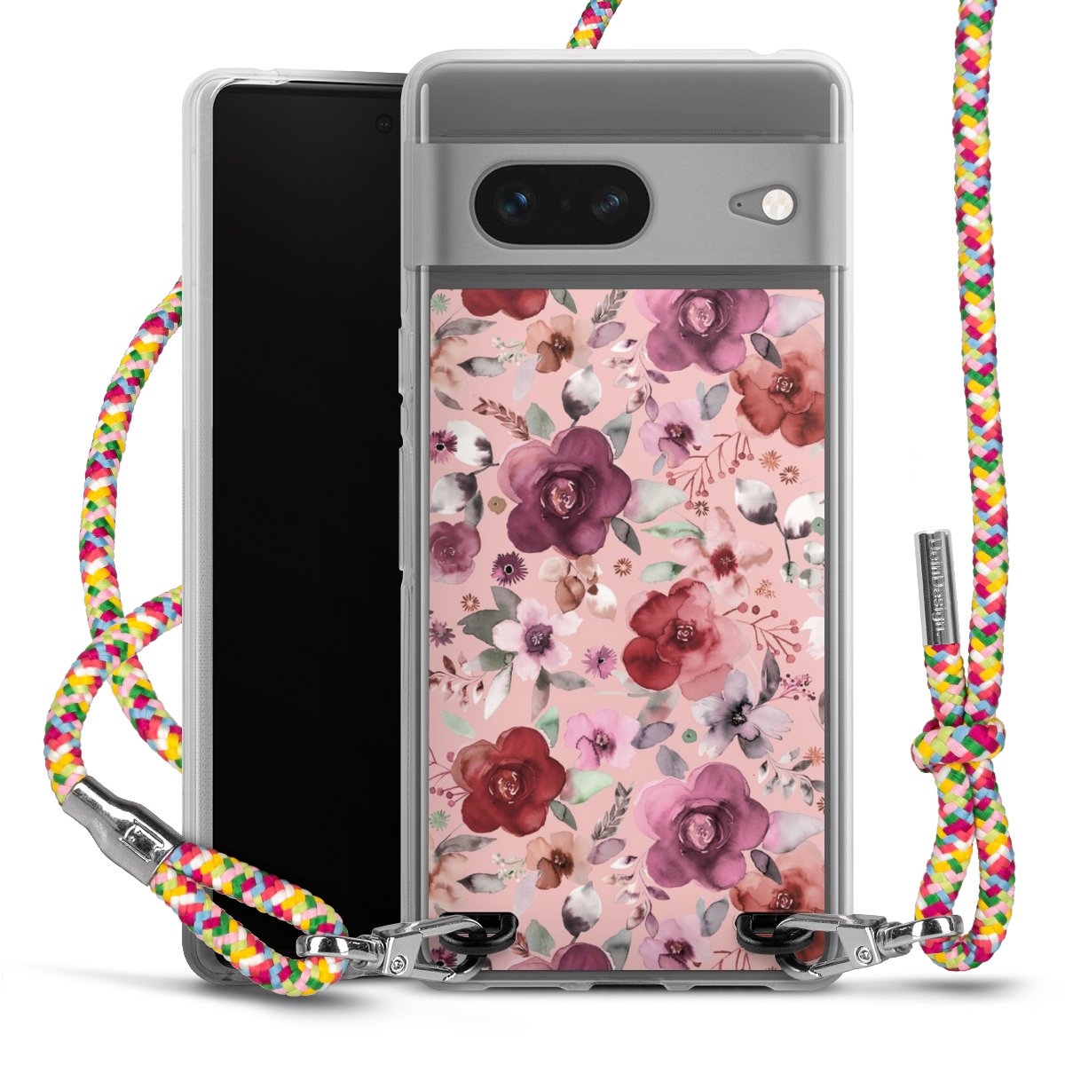 The flexible case is made from a highquality TPU material (thermoplastic Polyurethan). Thanks to its longlasting and break resistant characterisitcs, the case is flexible yet consistent in form and has a great grip and feel. The textile strap made from Polyester gives a chic yet casual accent allowing you to carry your phone like a bag or necklace - a practical gadget perfect for your next adventure. The textile strap is about 1.70 meters long and the length can easily be adjusted through the knots. Our Carry Case is available in Colourful, Mint-Camouflage, Very-Berry, Sahara-Sand and Sparkling-Neon. The ends of the textile strap are covered with metallic end caps to protect them against fraying.