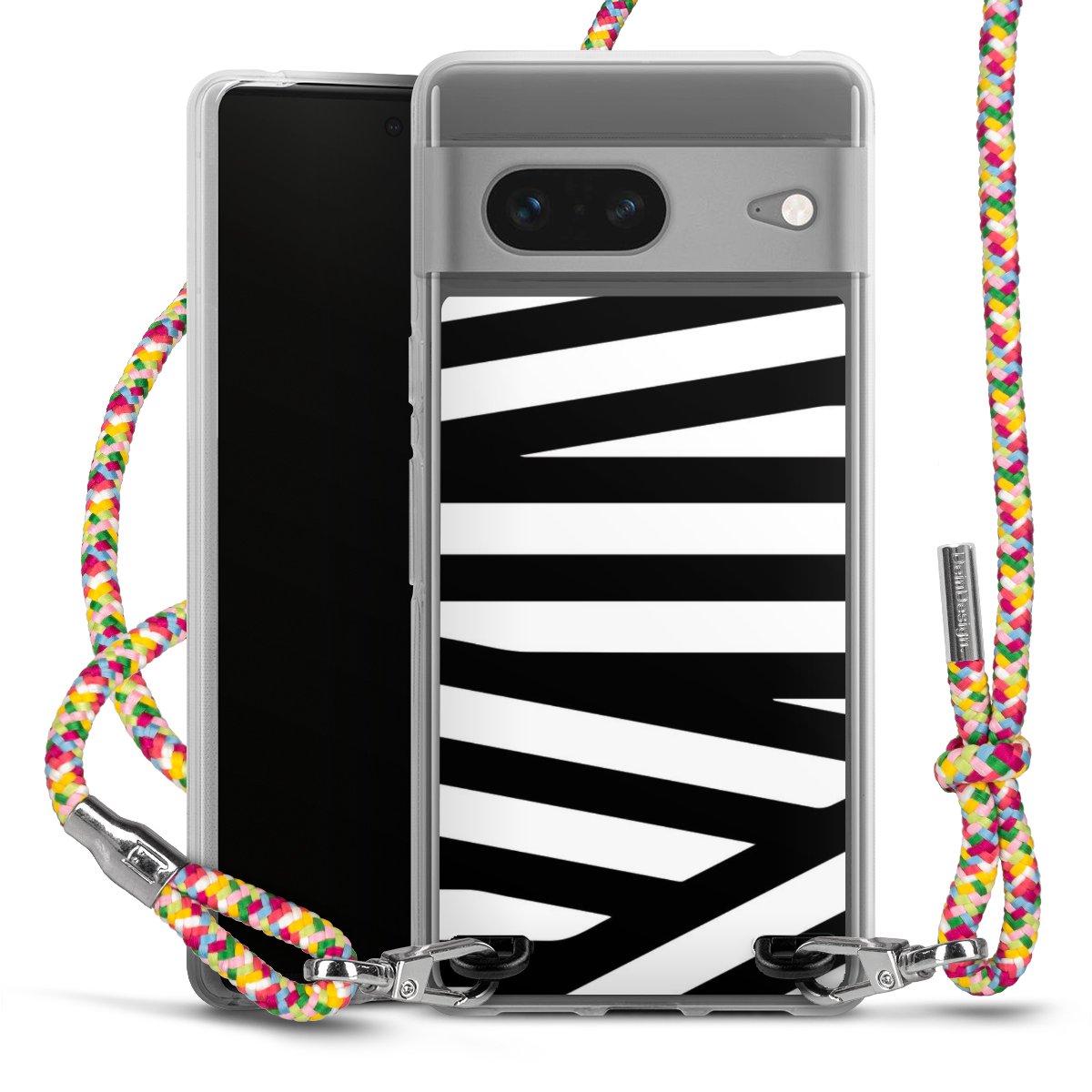 The flexible case is made from a highquality TPU material (thermoplastic Polyurethan). Thanks to its longlasting and break resistant characterisitcs, the case is flexible yet consistent in form and has a great grip and feel. The textile strap made from Polyester gives a chic yet casual accent allowing you to carry your phone like a bag or necklace - a practical gadget perfect for your next adventure. The textile strap is about 1.70 meters long and the length can easily be adjusted through the knots. Our Carry Case is available in Colourful, Mint-Camouflage, Very-Berry, Sahara-Sand and Sparkling-Neon. The ends of the textile strap are covered with metallic end caps to protect them against fraying.
