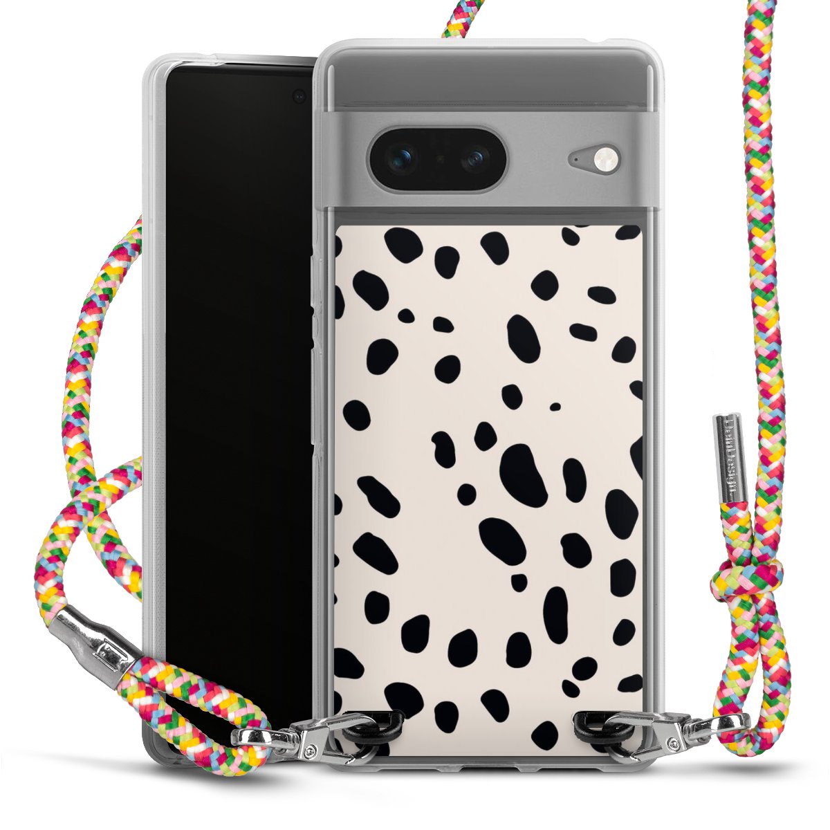 The flexible case is made from a highquality TPU material (thermoplastic Polyurethan). Thanks to its longlasting and break resistant characterisitcs, the case is flexible yet consistent in form and has a great grip and feel. The textile strap made from Polyester gives a chic yet casual accent allowing you to carry your phone like a bag or necklace - a practical gadget perfect for your next adventure. The textile strap is about 1.70 meters long and the length can easily be adjusted through the knots. Our Carry Case is available in Colourful, Mint-Camouflage, Very-Berry, Sahara-Sand and Sparkling-Neon. The ends of the textile strap are covered with metallic end caps to protect them against fraying.