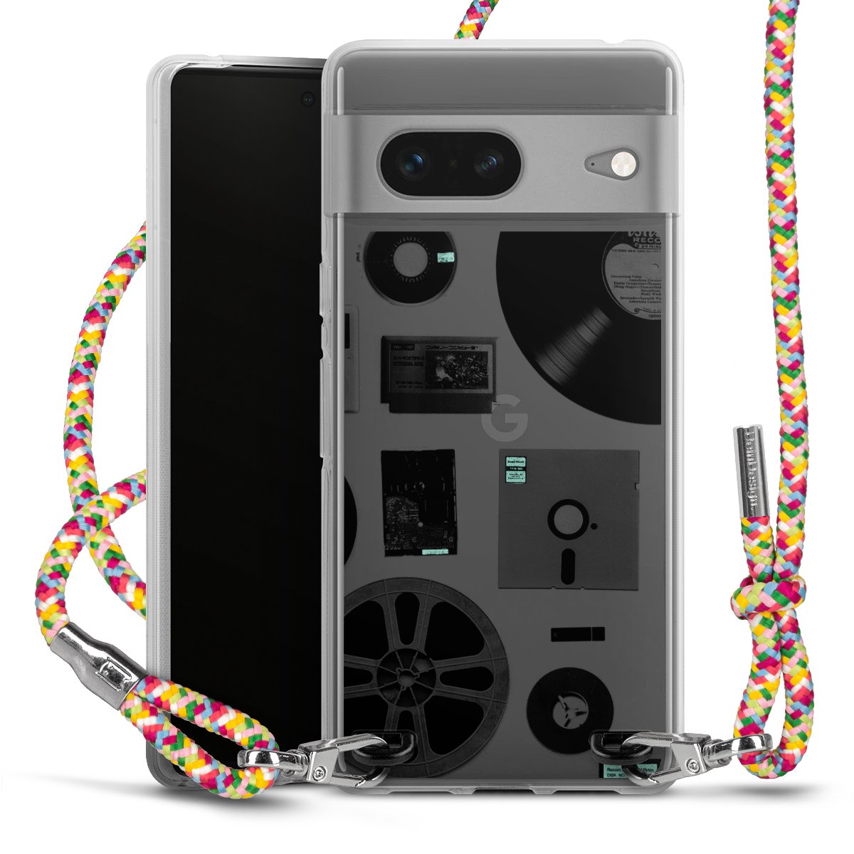 The flexible case is made from a highquality TPU material (thermoplastic Polyurethan). Thanks to its longlasting and break resistant characterisitcs, the case is flexible yet consistent in form and has a great grip and feel. The textile strap made from Polyester gives a chic yet casual accent allowing you to carry your phone like a bag or necklace - a practical gadget perfect for your next adventure. The textile strap is about 1.70 meters long and the length can easily be adjusted through the knots. Our Carry Case is available in Colourful, Mint-Camouflage, Very-Berry, Sahara-Sand and Sparkling-Neon. The ends of the textile strap are covered with metallic end caps to protect them against fraying.