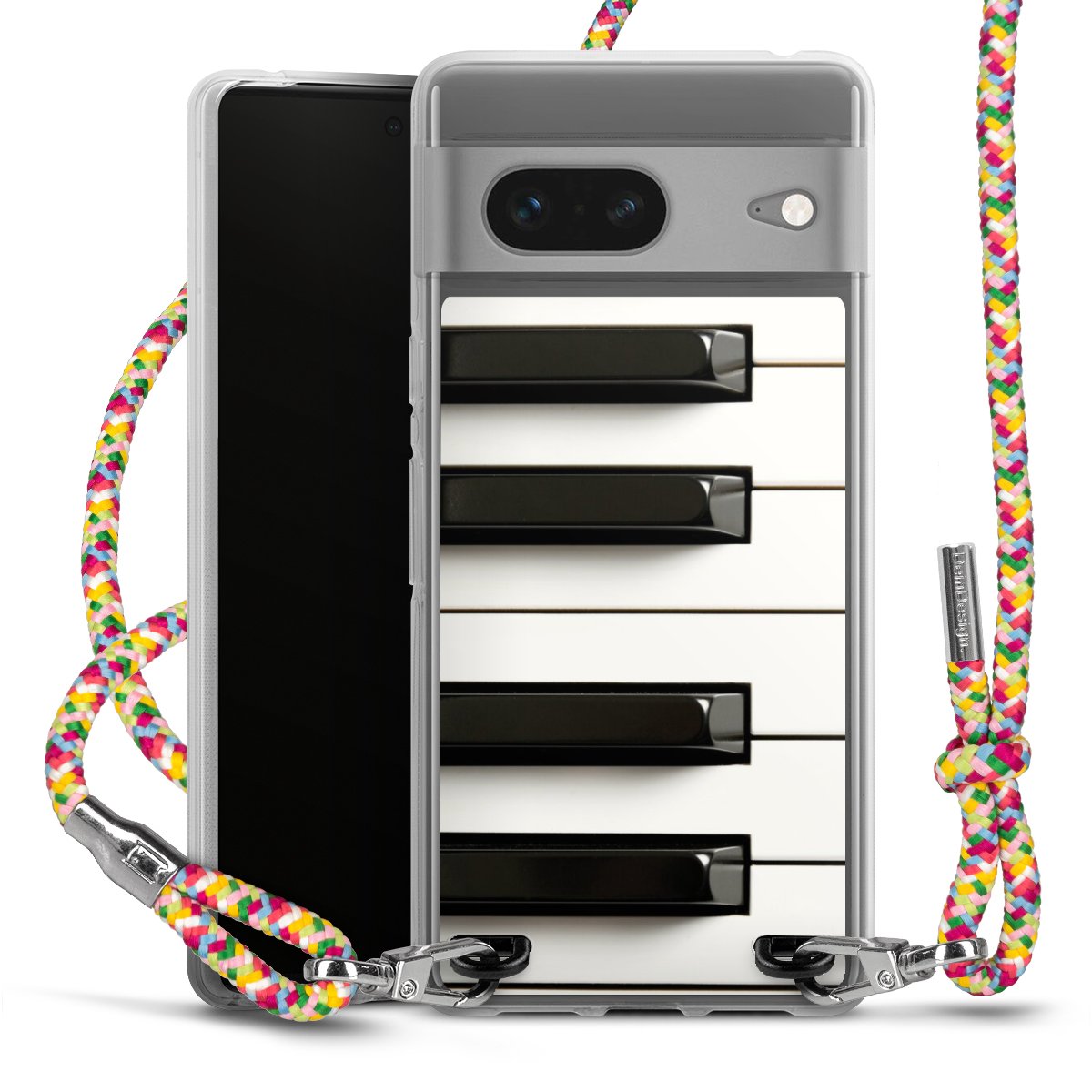 The flexible case is made from a highquality TPU material (thermoplastic Polyurethan). Thanks to its longlasting and break resistant characterisitcs, the case is flexible yet consistent in form and has a great grip and feel. The textile strap made from Polyester gives a chic yet casual accent allowing you to carry your phone like a bag or necklace - a practical gadget perfect for your next adventure. The textile strap is about 1.70 meters long and the length can easily be adjusted through the knots. Our Carry Case is available in Colourful, Mint-Camouflage, Very-Berry, Sahara-Sand and Sparkling-Neon. The ends of the textile strap are covered with metallic end caps to protect them against fraying.
