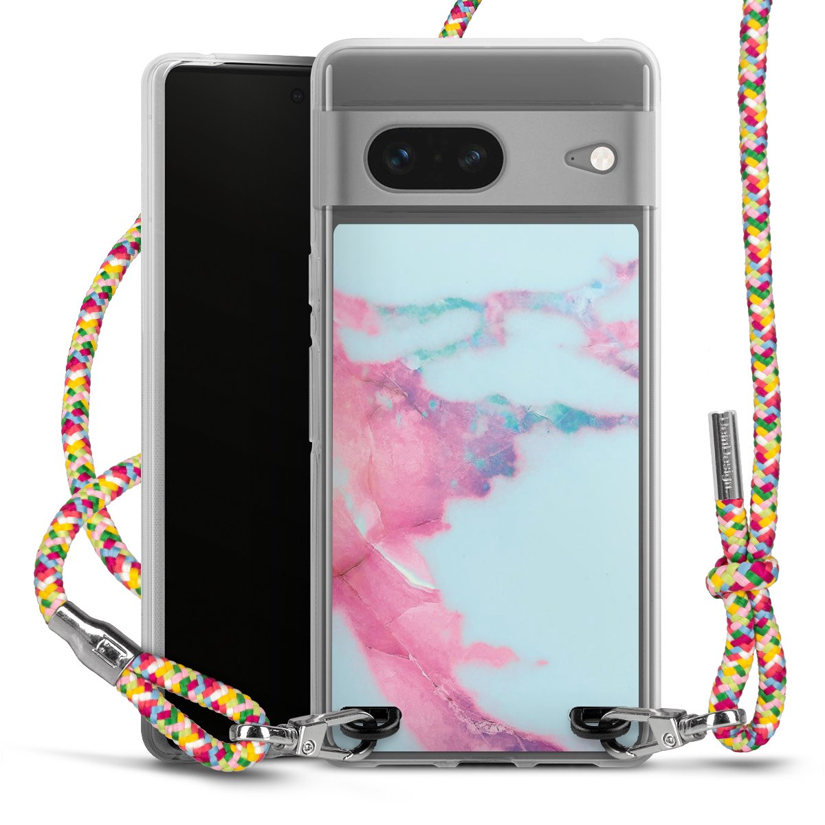 The flexible case is made from a highquality TPU material (thermoplastic Polyurethan). Thanks to its longlasting and break resistant characterisitcs, the case is flexible yet consistent in form and has a great grip and feel. The textile strap made from Polyester gives a chic yet casual accent allowing you to carry your phone like a bag or necklace - a practical gadget perfect for your next adventure. The textile strap is about 1.70 meters long and the length can easily be adjusted through the knots. Our Carry Case is available in Colourful, Mint-Camouflage, Very-Berry, Sahara-Sand and Sparkling-Neon. The ends of the textile strap are covered with metallic end caps to protect them against fraying.