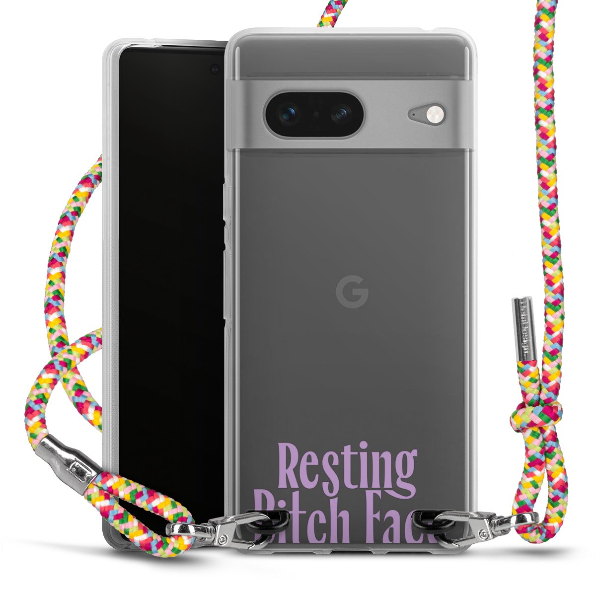 The flexible case is made from a highquality TPU material (thermoplastic Polyurethan). Thanks to its longlasting and break resistant characterisitcs, the case is flexible yet consistent in form and has a great grip and feel. The textile strap made from Polyester gives a chic yet casual accent allowing you to carry your phone like a bag or necklace - a practical gadget perfect for your next adventure. The textile strap is about 1.70 meters long and the length can easily be adjusted through the knots. Our Carry Case is available in Colourful, Mint-Camouflage, Very-Berry, Sahara-Sand and Sparkling-Neon. The ends of the textile strap are covered with metallic end caps to protect them against fraying.