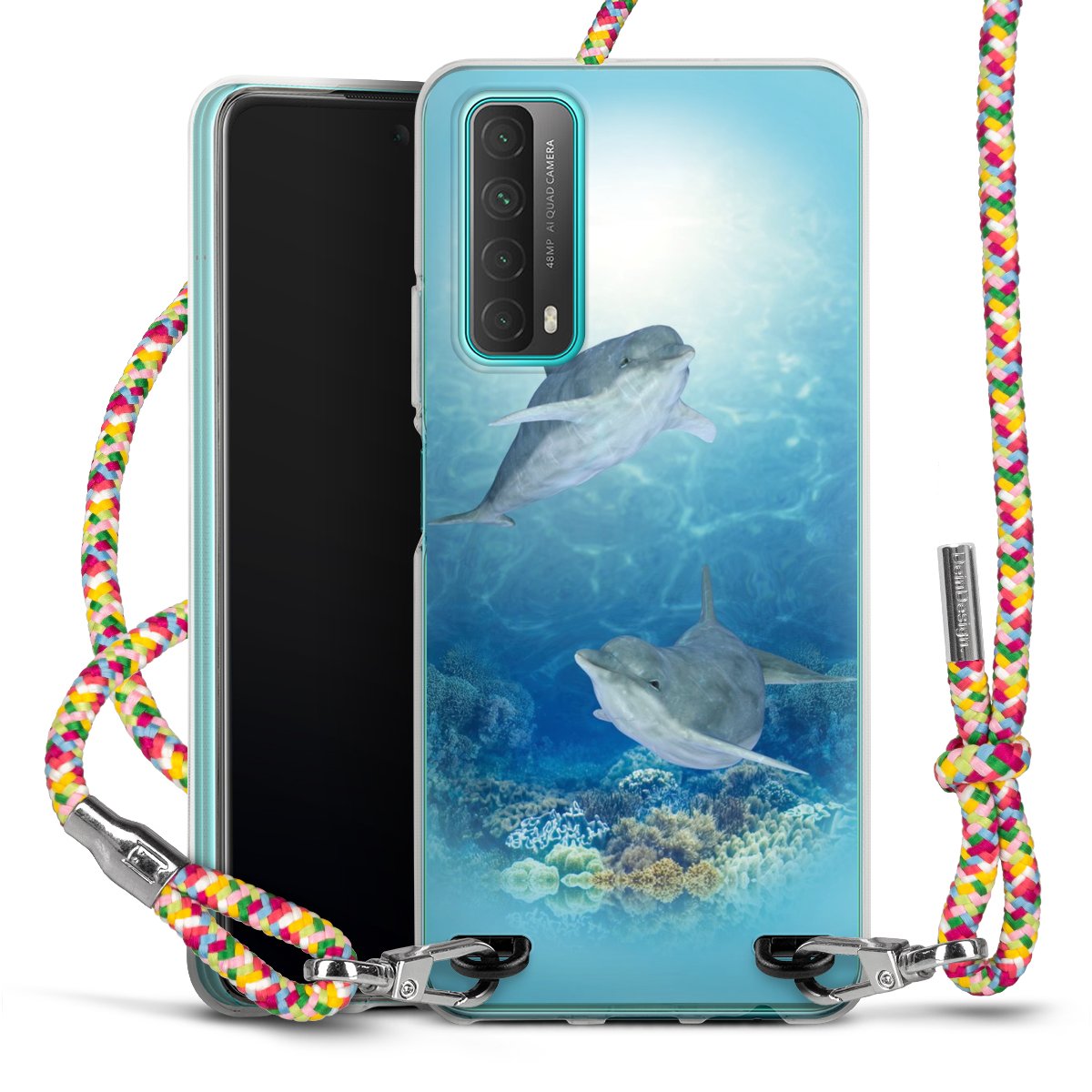 The flexible case is made from a highquality TPU material (thermoplastic Polyurethan). Thanks to its longlasting and break resistant characterisitcs, the case is flexible yet consistent in form and has a great grip and feel. The textile strap made from Polyester gives a chic yet casual accent allowing you to carry your phone like a bag or necklace - a practical gadget perfect for your next adventure. The textile strap is about 1.70 meters long and the length can easily be adjusted through the knots. Our Carry Case is available in Colourful, Mint-Camouflage, Very-Berry, Sahara-Sand and Sparkling-Neon. The ends of the textile strap are covered with metallic end caps to protect them against fraying.