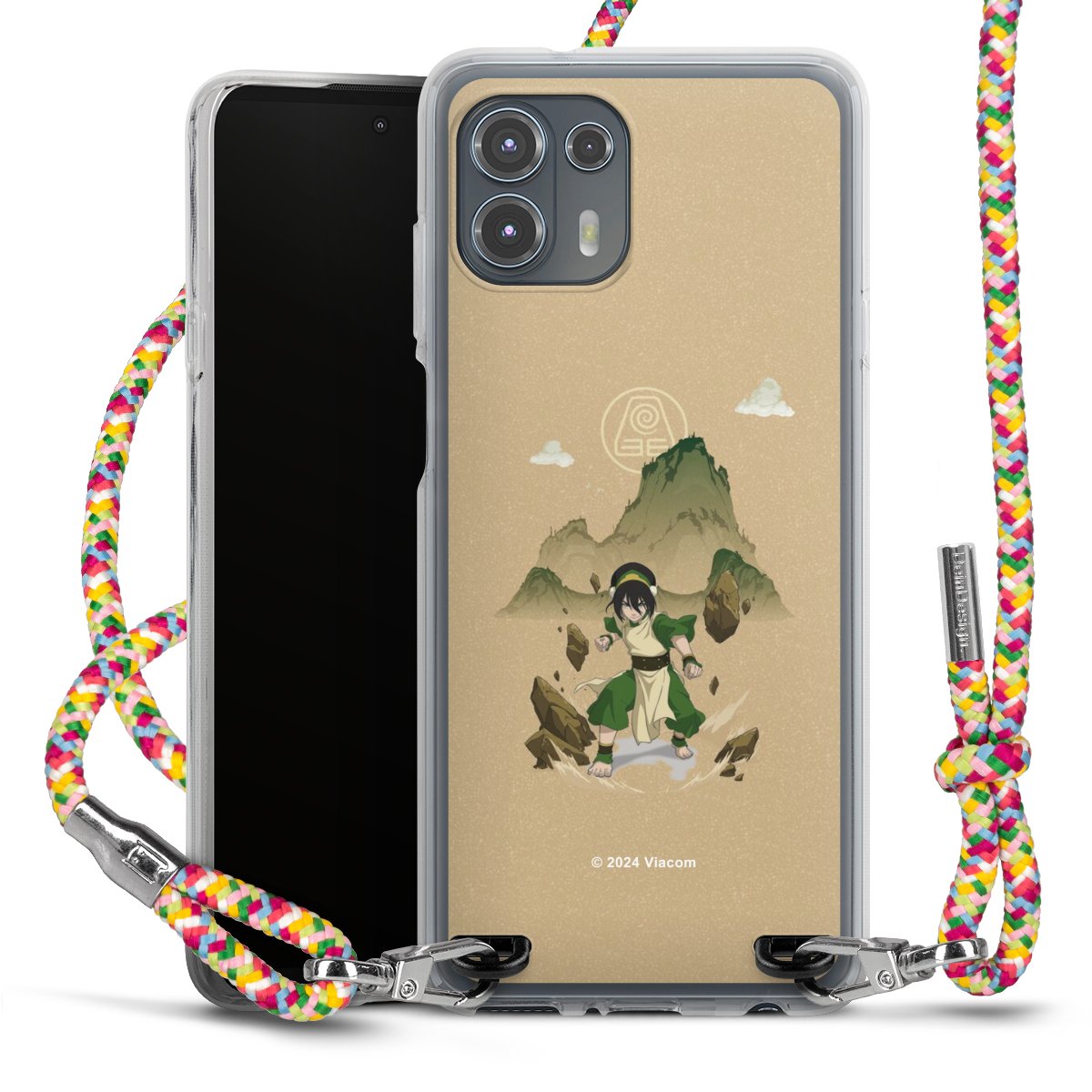 The flexible case is made from a highquality TPU material (thermoplastic Polyurethan). Thanks to its longlasting and break resistant characterisitcs, the case is flexible yet consistent in form and has a great grip and feel. The textile strap made from Polyester gives a chic yet casual accent allowing you to carry your phone like a bag or necklace - a practical gadget perfect for your next adventure. The textile strap is about 1.70 meters long and the length can easily be adjusted through the knots. Our Carry Case is available in Colourful, Mint-Camouflage, Very-Berry, Sahara-Sand and Sparkling-Neon. The ends of the textile strap are covered with metallic end caps to protect them against fraying.