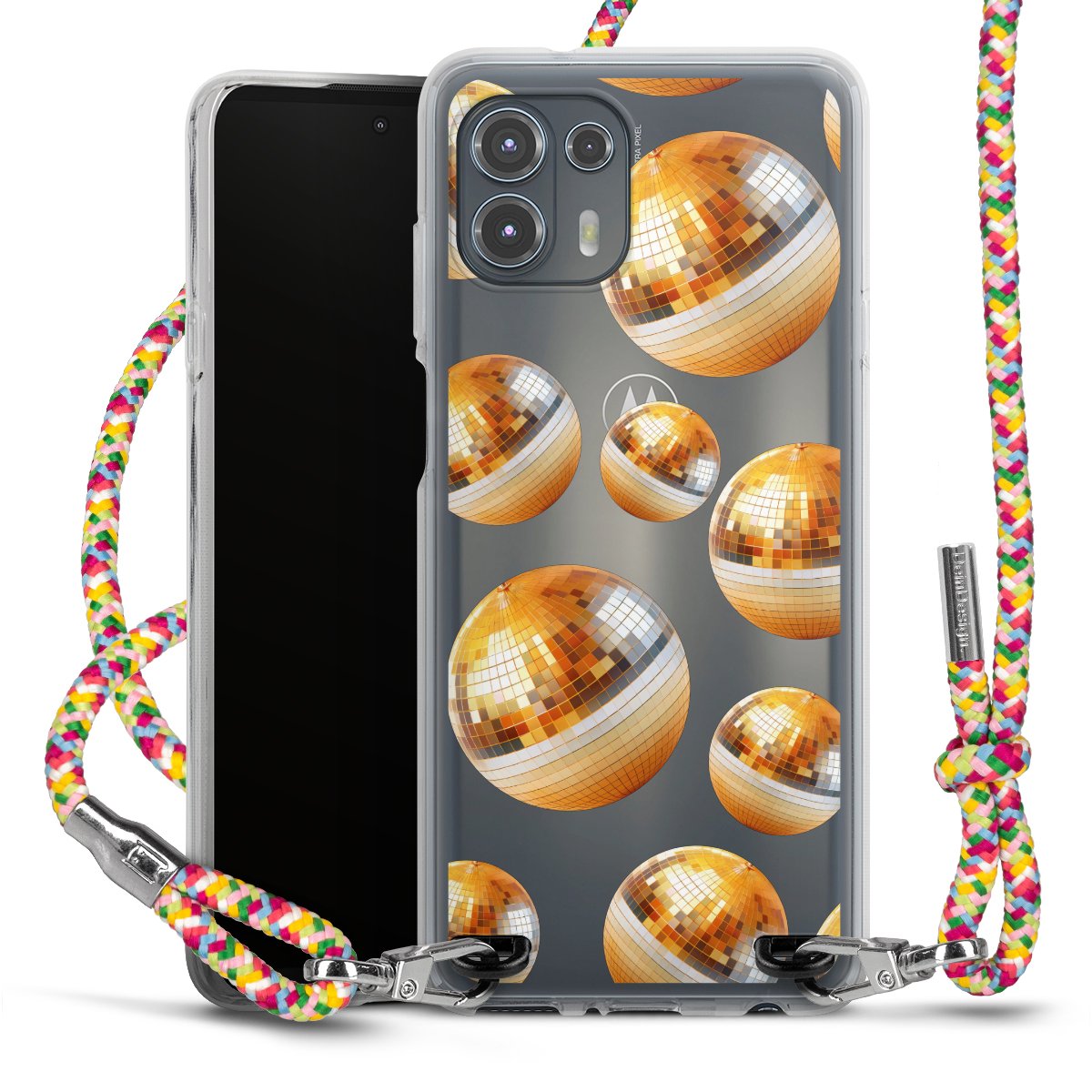 The flexible case is made from a highquality TPU material (thermoplastic Polyurethan). Thanks to its longlasting and break resistant characterisitcs, the case is flexible yet consistent in form and has a great grip and feel. The textile strap made from Polyester gives a chic yet casual accent allowing you to carry your phone like a bag or necklace - a practical gadget perfect for your next adventure. The textile strap is about 1.70 meters long and the length can easily be adjusted through the knots. Our Carry Case is available in Colourful, Mint-Camouflage, Very-Berry, Sahara-Sand and Sparkling-Neon. The ends of the textile strap are covered with metallic end caps to protect them against fraying.