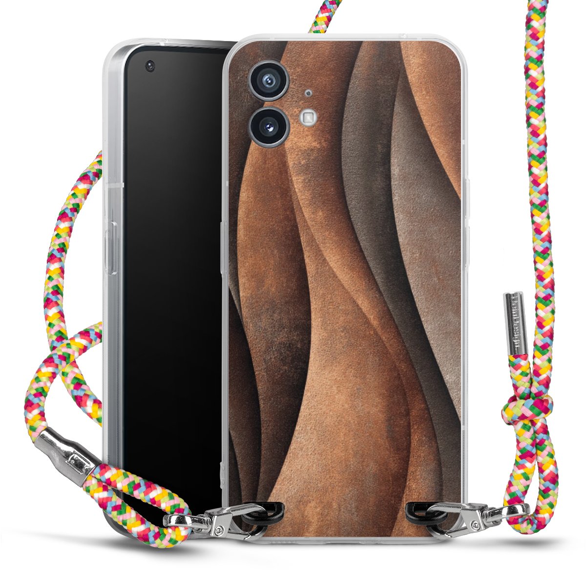 The flexible case is made from a highquality TPU material (thermoplastic Polyurethan). Thanks to its longlasting and break resistant characterisitcs, the case is flexible yet consistent in form and has a great grip and feel. The textile strap made from Polyester gives a chic yet casual accent allowing you to carry your phone like a bag or necklace - a practical gadget perfect for your next adventure. The textile strap is about 1.70 meters long and the length can easily be adjusted through the knots. Our Carry Case is available in Colourful, Mint-Camouflage, Very-Berry, Sahara-Sand and Sparkling-Neon. The ends of the textile strap are covered with metallic end caps to protect them against fraying.