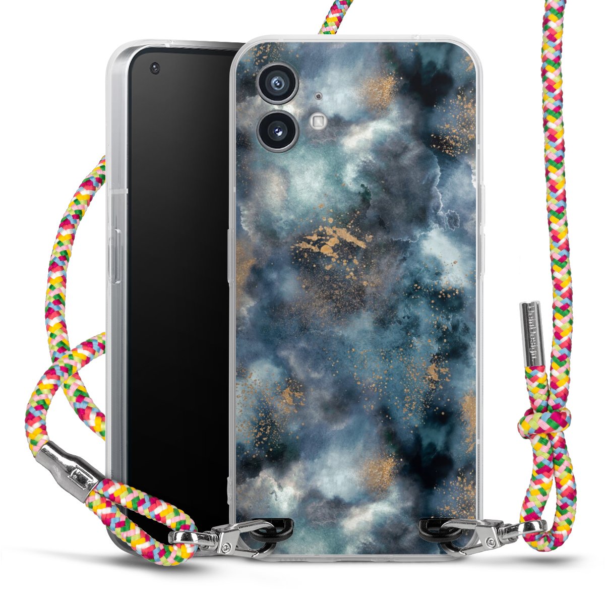 The flexible case is made from a highquality TPU material (thermoplastic Polyurethan). Thanks to its longlasting and break resistant characterisitcs, the case is flexible yet consistent in form and has a great grip and feel. The textile strap made from Polyester gives a chic yet casual accent allowing you to carry your phone like a bag or necklace - a practical gadget perfect for your next adventure. The textile strap is about 1.70 meters long and the length can easily be adjusted through the knots. Our Carry Case is available in Colourful, Mint-Camouflage, Very-Berry, Sahara-Sand and Sparkling-Neon. The ends of the textile strap are covered with metallic end caps to protect them against fraying.