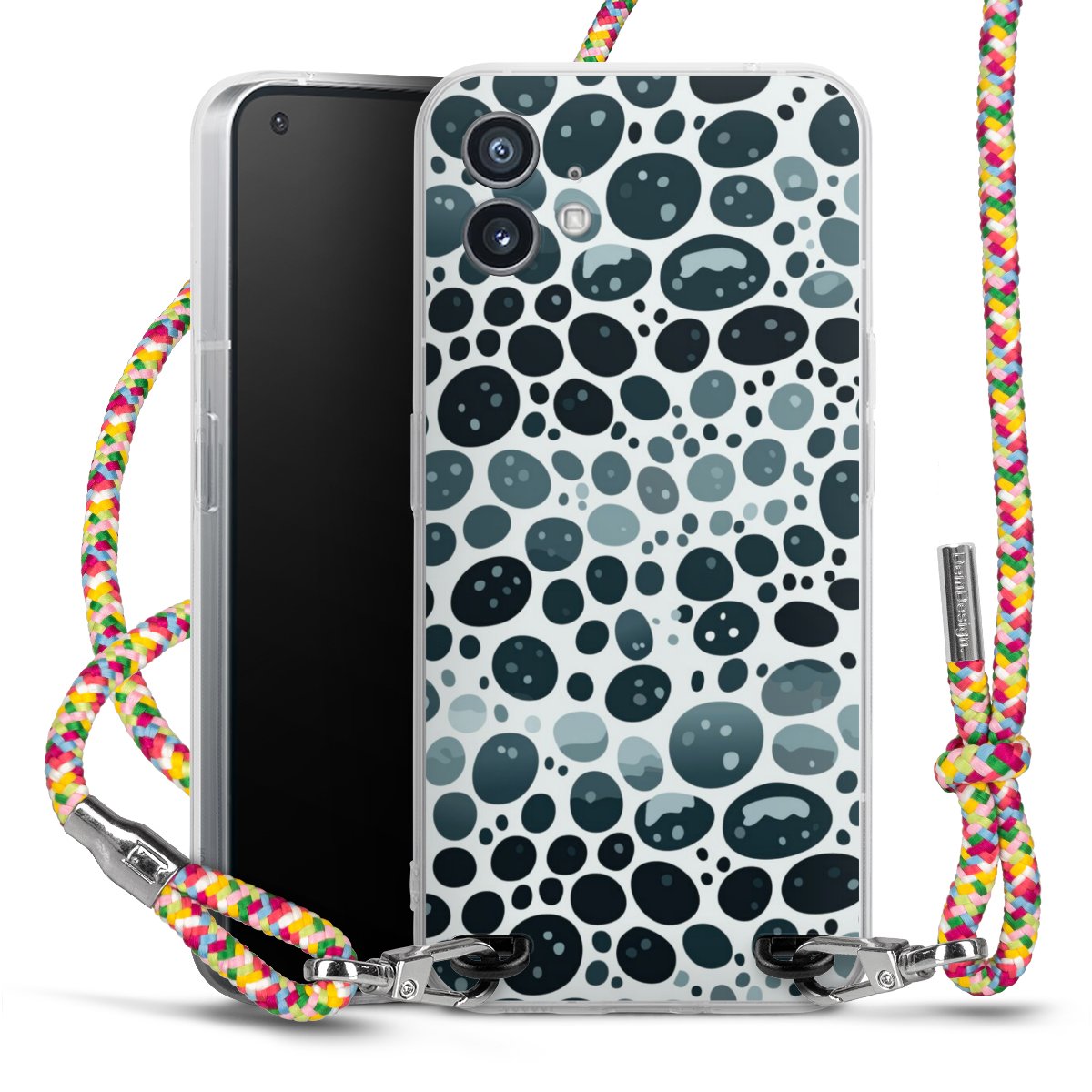 The flexible case is made from a highquality TPU material (thermoplastic Polyurethan). Thanks to its longlasting and break resistant characterisitcs, the case is flexible yet consistent in form and has a great grip and feel. The textile strap made from Polyester gives a chic yet casual accent allowing you to carry your phone like a bag or necklace - a practical gadget perfect for your next adventure. The textile strap is about 1.70 meters long and the length can easily be adjusted through the knots. Our Carry Case is available in Colourful, Mint-Camouflage, Very-Berry, Sahara-Sand and Sparkling-Neon. The ends of the textile strap are covered with metallic end caps to protect them against fraying.