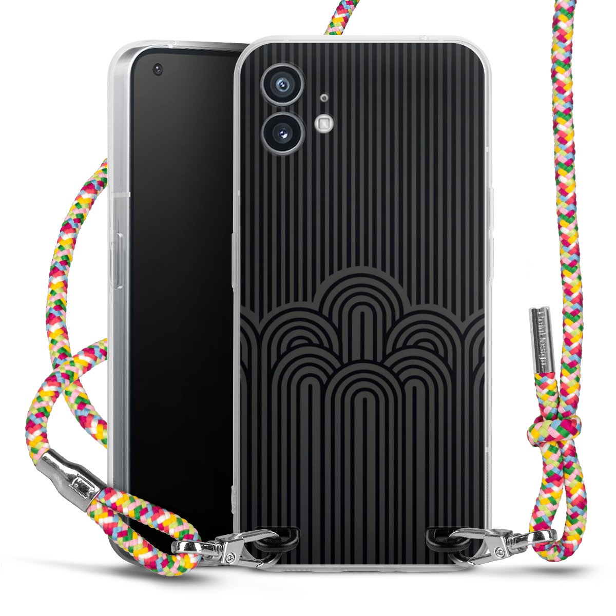 The flexible case is made from a highquality TPU material (thermoplastic Polyurethan). Thanks to its longlasting and break resistant characterisitcs, the case is flexible yet consistent in form and has a great grip and feel. The textile strap made from Polyester gives a chic yet casual accent allowing you to carry your phone like a bag or necklace - a practical gadget perfect for your next adventure. The textile strap is about 1.70 meters long and the length can easily be adjusted through the knots. Our Carry Case is available in Colourful, Mint-Camouflage, Very-Berry, Sahara-Sand and Sparkling-Neon. The ends of the textile strap are covered with metallic end caps to protect them against fraying.
