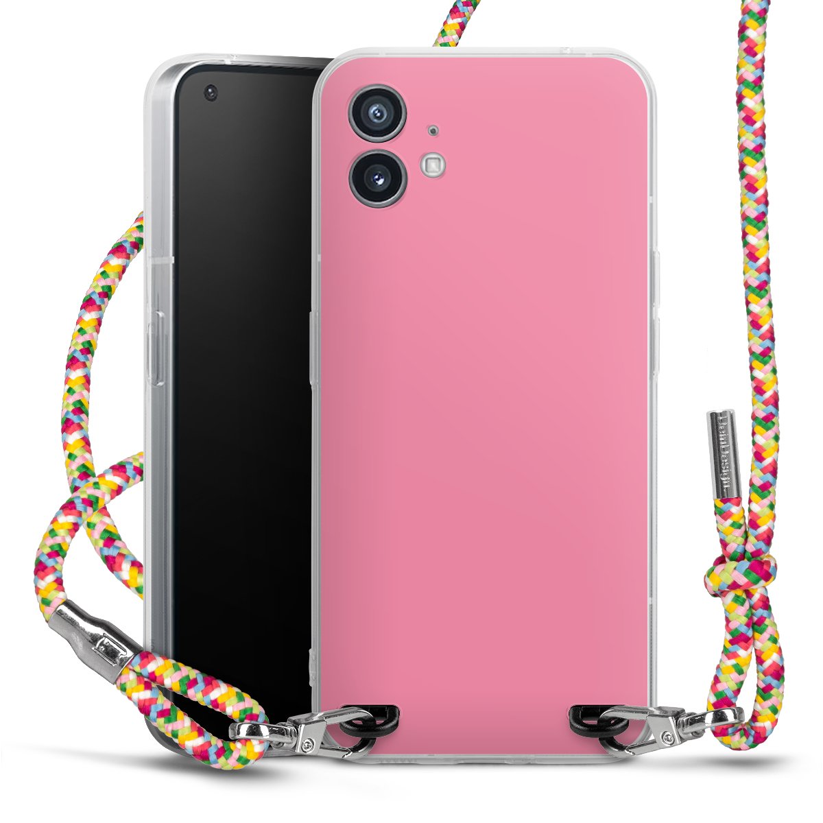 The flexible case is made from a highquality TPU material (thermoplastic Polyurethan). Thanks to its longlasting and break resistant characterisitcs, the case is flexible yet consistent in form and has a great grip and feel. The textile strap made from Polyester gives a chic yet casual accent allowing you to carry your phone like a bag or necklace - a practical gadget perfect for your next adventure. The textile strap is about 1.70 meters long and the length can easily be adjusted through the knots. Our Carry Case is available in Colourful, Mint-Camouflage, Very-Berry, Sahara-Sand and Sparkling-Neon. The ends of the textile strap are covered with metallic end caps to protect them against fraying.