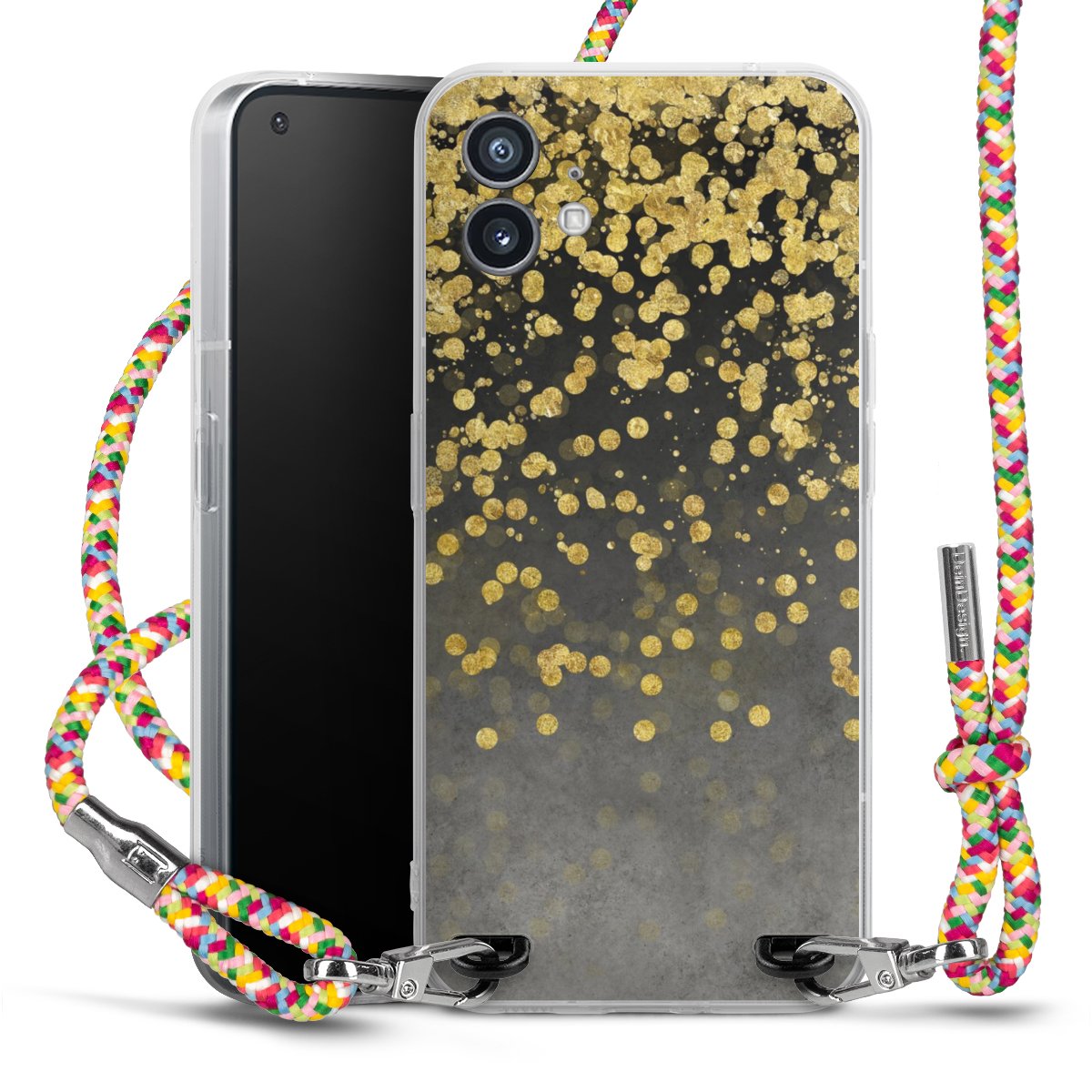 The flexible case is made from a highquality TPU material (thermoplastic Polyurethan). Thanks to its longlasting and break resistant characterisitcs, the case is flexible yet consistent in form and has a great grip and feel. The textile strap made from Polyester gives a chic yet casual accent allowing you to carry your phone like a bag or necklace - a practical gadget perfect for your next adventure. The textile strap is about 1.70 meters long and the length can easily be adjusted through the knots. Our Carry Case is available in Colourful, Mint-Camouflage, Very-Berry, Sahara-Sand and Sparkling-Neon. The ends of the textile strap are covered with metallic end caps to protect them against fraying.