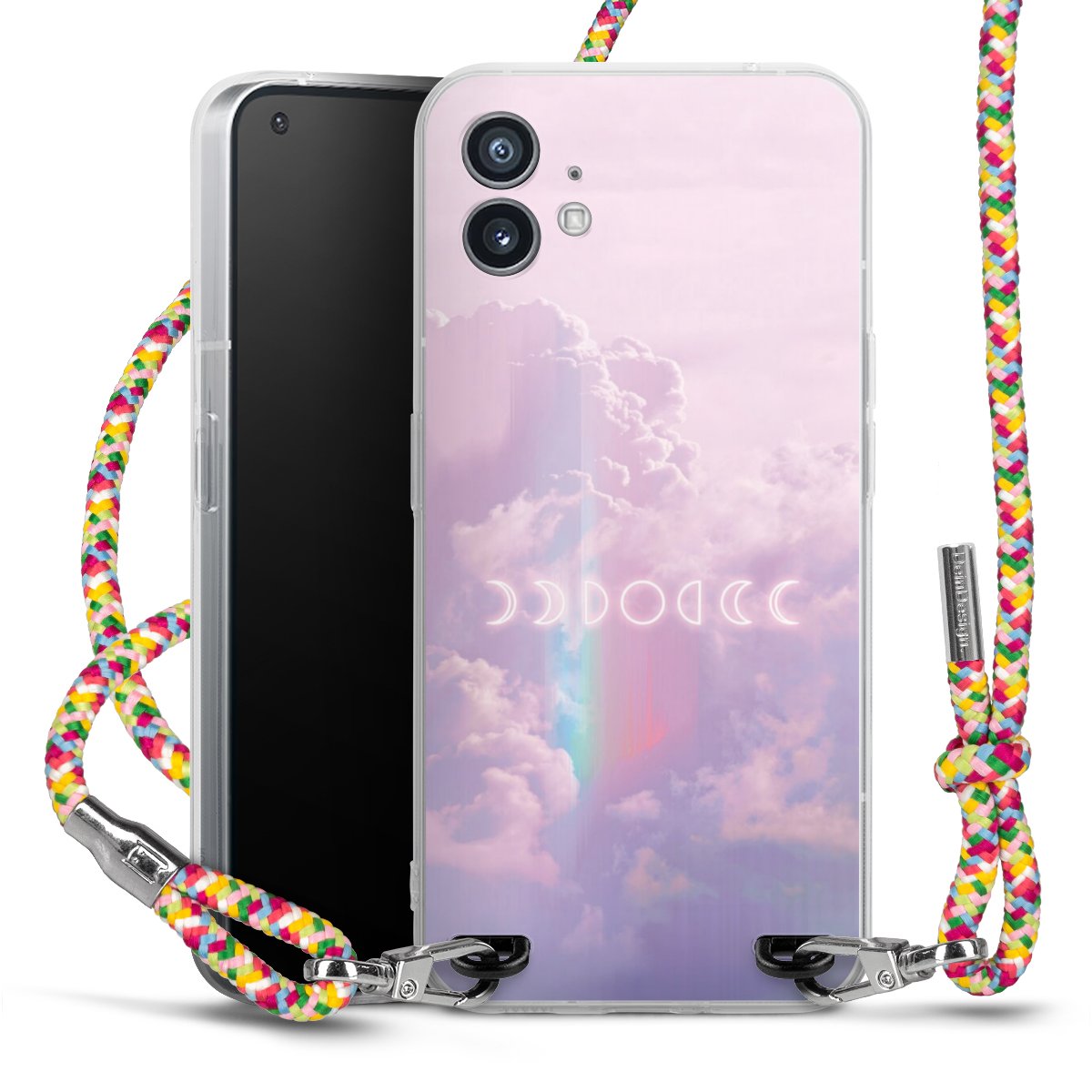 The flexible case is made from a highquality TPU material (thermoplastic Polyurethan). Thanks to its longlasting and break resistant characterisitcs, the case is flexible yet consistent in form and has a great grip and feel. The textile strap made from Polyester gives a chic yet casual accent allowing you to carry your phone like a bag or necklace - a practical gadget perfect for your next adventure. The textile strap is about 1.70 meters long and the length can easily be adjusted through the knots. Our Carry Case is available in Colourful, Mint-Camouflage, Very-Berry, Sahara-Sand and Sparkling-Neon. The ends of the textile strap are covered with metallic end caps to protect them against fraying.