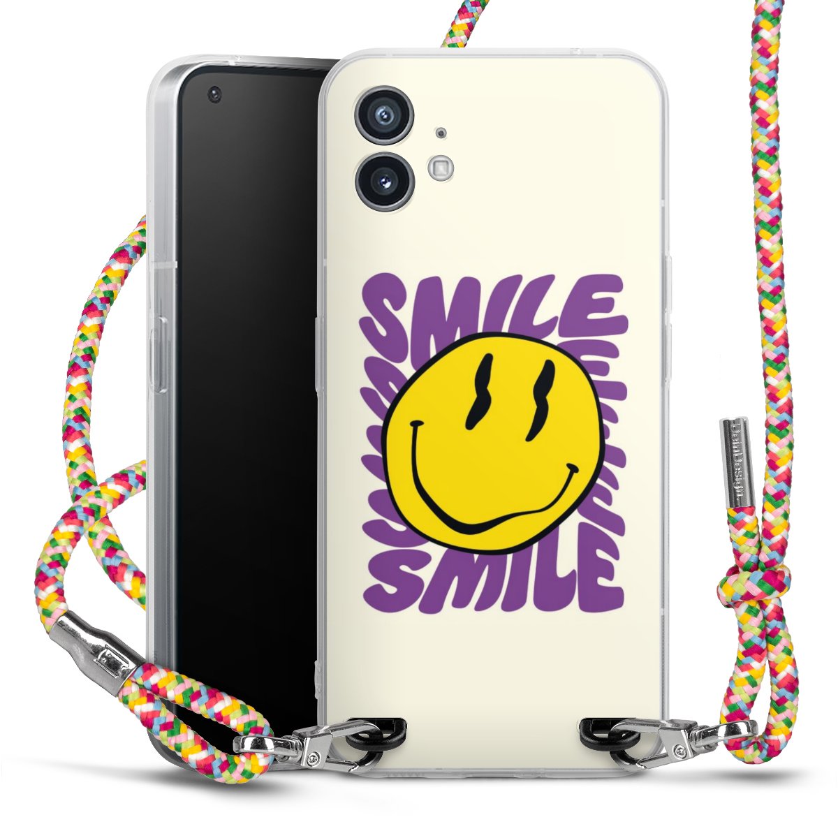 The flexible case is made from a highquality TPU material (thermoplastic Polyurethan). Thanks to its longlasting and break resistant characterisitcs, the case is flexible yet consistent in form and has a great grip and feel. The textile strap made from Polyester gives a chic yet casual accent allowing you to carry your phone like a bag or necklace - a practical gadget perfect for your next adventure. The textile strap is about 1.70 meters long and the length can easily be adjusted through the knots. Our Carry Case is available in Colourful, Mint-Camouflage, Very-Berry, Sahara-Sand and Sparkling-Neon. The ends of the textile strap are covered with metallic end caps to protect them against fraying.