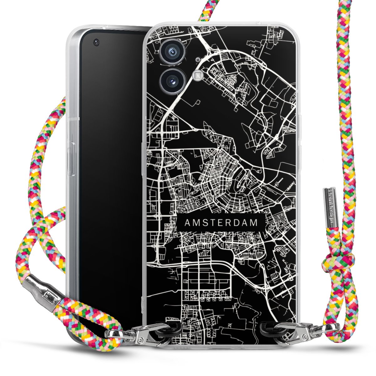 The flexible case is made from a highquality TPU material (thermoplastic Polyurethan). Thanks to its longlasting and break resistant characterisitcs, the case is flexible yet consistent in form and has a great grip and feel. The textile strap made from Polyester gives a chic yet casual accent allowing you to carry your phone like a bag or necklace - a practical gadget perfect for your next adventure. The textile strap is about 1.70 meters long and the length can easily be adjusted through the knots. Our Carry Case is available in Colourful, Mint-Camouflage, Very-Berry, Sahara-Sand and Sparkling-Neon. The ends of the textile strap are covered with metallic end caps to protect them against fraying.