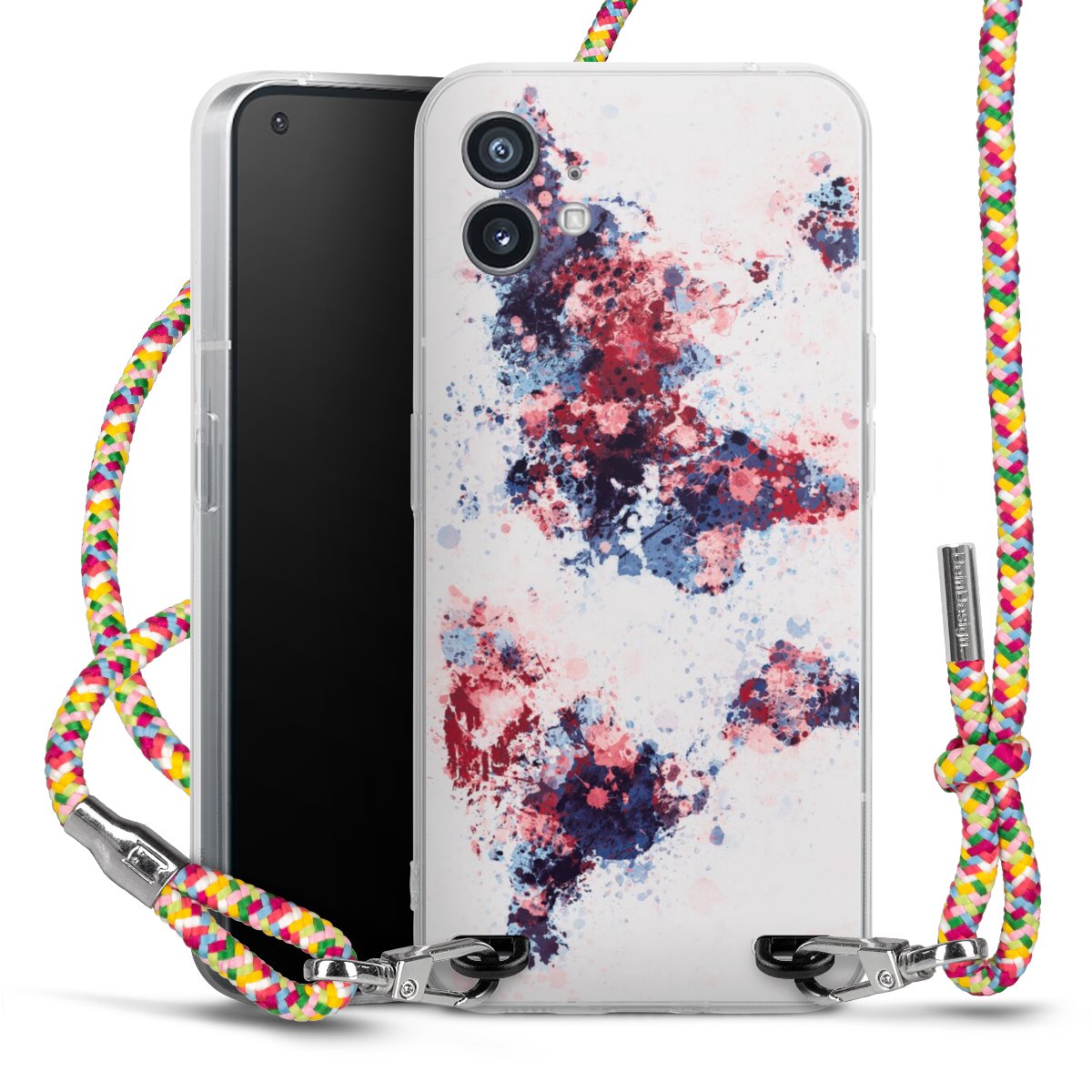 The flexible case is made from a highquality TPU material (thermoplastic Polyurethan). Thanks to its longlasting and break resistant characterisitcs, the case is flexible yet consistent in form and has a great grip and feel. The textile strap made from Polyester gives a chic yet casual accent allowing you to carry your phone like a bag or necklace - a practical gadget perfect for your next adventure. The textile strap is about 1.70 meters long and the length can easily be adjusted through the knots. Our Carry Case is available in Colourful, Mint-Camouflage, Very-Berry, Sahara-Sand and Sparkling-Neon. The ends of the textile strap are covered with metallic end caps to protect them against fraying.