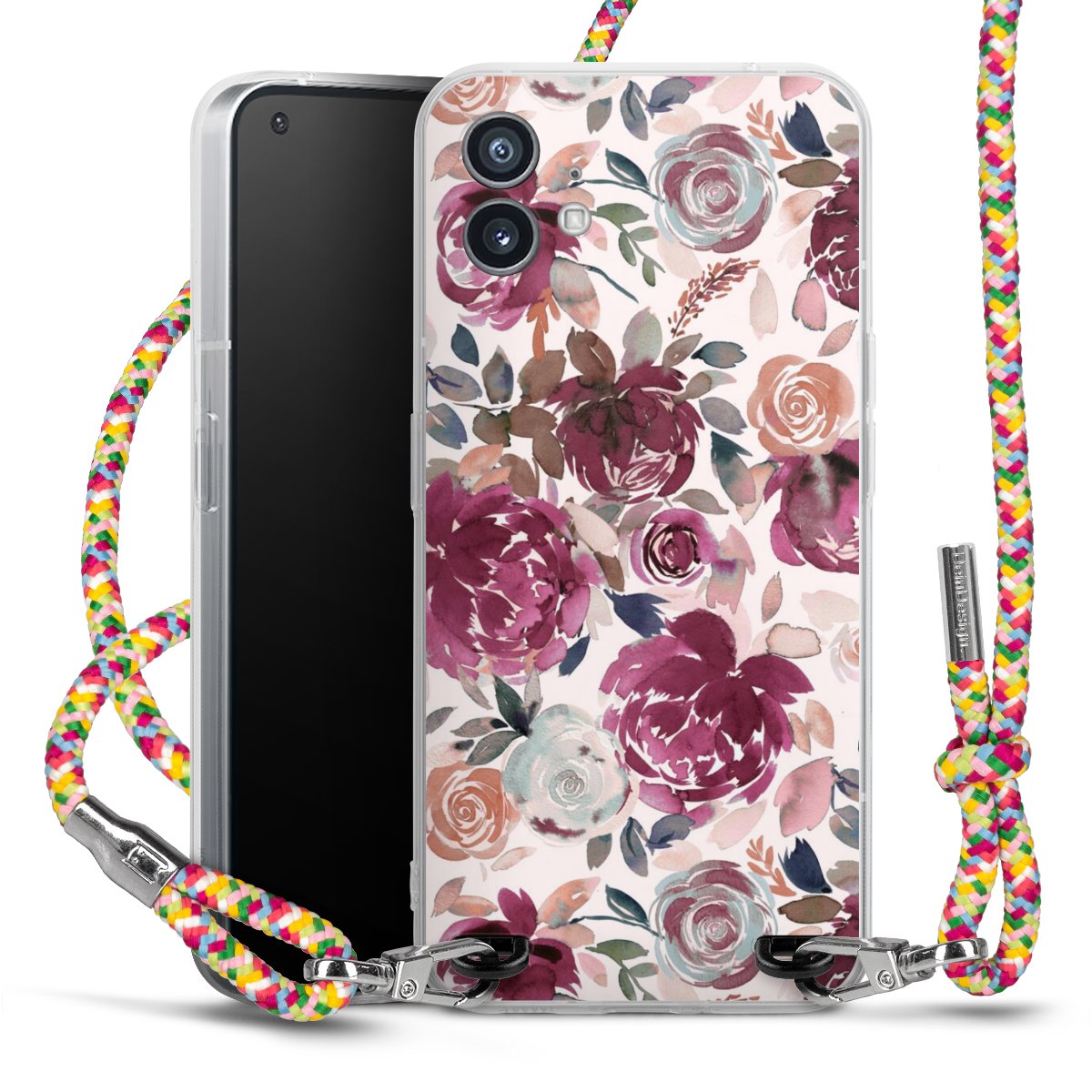 The flexible case is made from a highquality TPU material (thermoplastic Polyurethan). Thanks to its longlasting and break resistant characterisitcs, the case is flexible yet consistent in form and has a great grip and feel. The textile strap made from Polyester gives a chic yet casual accent allowing you to carry your phone like a bag or necklace - a practical gadget perfect for your next adventure. The textile strap is about 1.70 meters long and the length can easily be adjusted through the knots. Our Carry Case is available in Colourful, Mint-Camouflage, Very-Berry, Sahara-Sand and Sparkling-Neon. The ends of the textile strap are covered with metallic end caps to protect them against fraying.