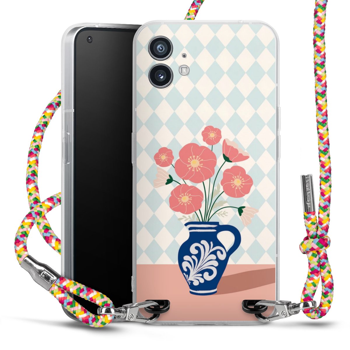 The flexible case is made from a highquality TPU material (thermoplastic Polyurethan). Thanks to its longlasting and break resistant characterisitcs, the case is flexible yet consistent in form and has a great grip and feel. The textile strap made from Polyester gives a chic yet casual accent allowing you to carry your phone like a bag or necklace - a practical gadget perfect for your next adventure. The textile strap is about 1.70 meters long and the length can easily be adjusted through the knots. Our Carry Case is available in Colourful, Mint-Camouflage, Very-Berry, Sahara-Sand and Sparkling-Neon. The ends of the textile strap are covered with metallic end caps to protect them against fraying.