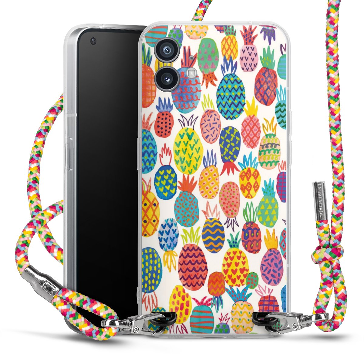The flexible case is made from a highquality TPU material (thermoplastic Polyurethan). Thanks to its longlasting and break resistant characterisitcs, the case is flexible yet consistent in form and has a great grip and feel. The textile strap made from Polyester gives a chic yet casual accent allowing you to carry your phone like a bag or necklace - a practical gadget perfect for your next adventure. The textile strap is about 1.70 meters long and the length can easily be adjusted through the knots. Our Carry Case is available in Colourful, Mint-Camouflage, Very-Berry, Sahara-Sand and Sparkling-Neon. The ends of the textile strap are covered with metallic end caps to protect them against fraying.
