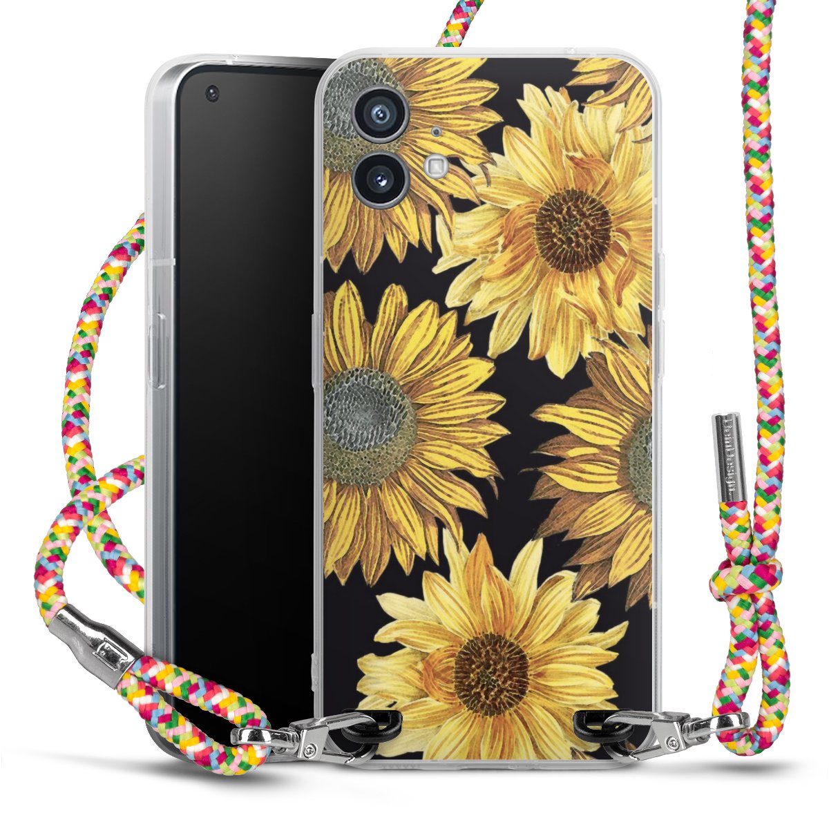 The flexible case is made from a highquality TPU material (thermoplastic Polyurethan). Thanks to its longlasting and break resistant characterisitcs, the case is flexible yet consistent in form and has a great grip and feel. The textile strap made from Polyester gives a chic yet casual accent allowing you to carry your phone like a bag or necklace - a practical gadget perfect for your next adventure. The textile strap is about 1.70 meters long and the length can easily be adjusted through the knots. Our Carry Case is available in Colourful, Mint-Camouflage, Very-Berry, Sahara-Sand and Sparkling-Neon. The ends of the textile strap are covered with metallic end caps to protect them against fraying.