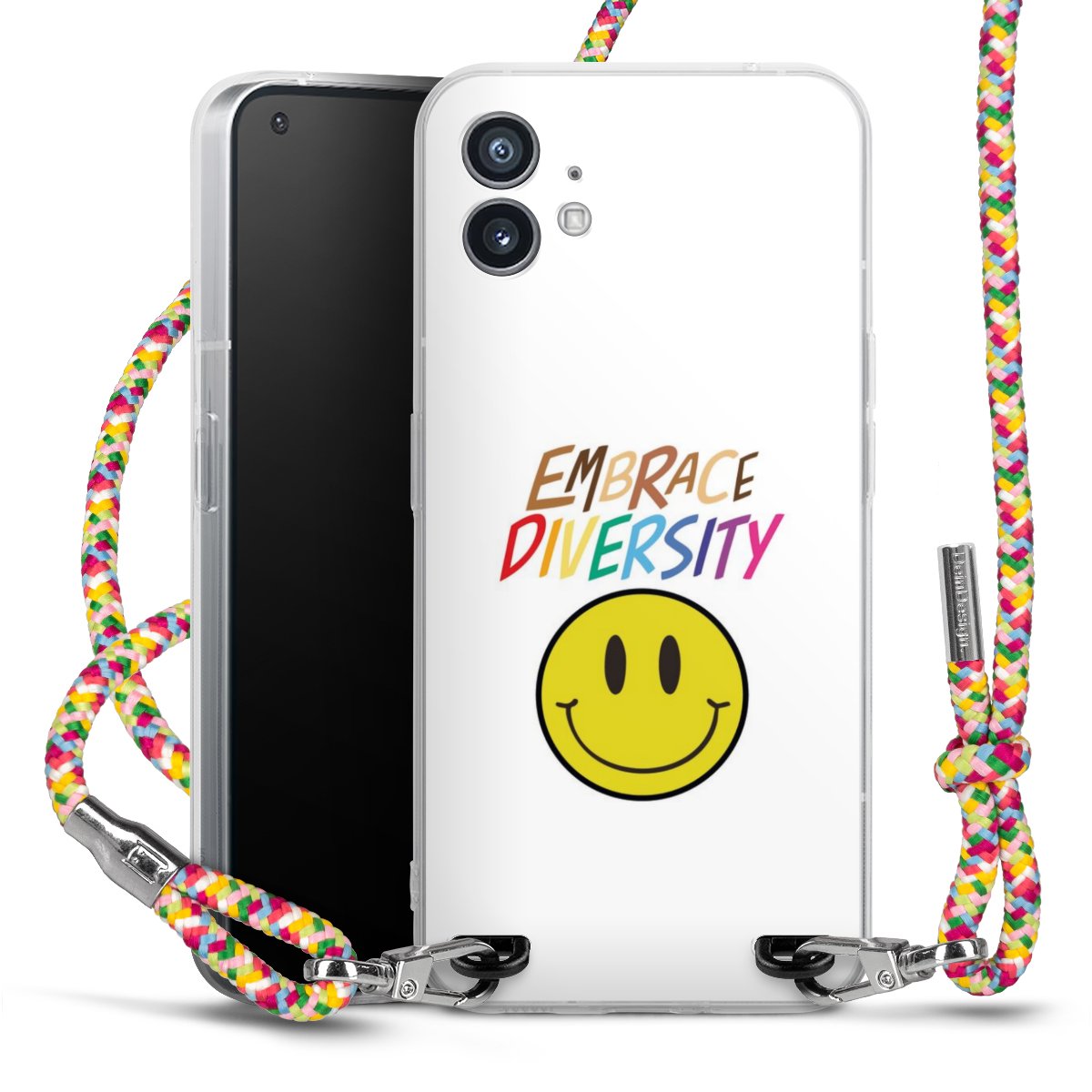 The flexible case is made from a highquality TPU material (thermoplastic Polyurethan). Thanks to its longlasting and break resistant characterisitcs, the case is flexible yet consistent in form and has a great grip and feel. The textile strap made from Polyester gives a chic yet casual accent allowing you to carry your phone like a bag or necklace - a practical gadget perfect for your next adventure. The textile strap is about 1.70 meters long and the length can easily be adjusted through the knots. Our Carry Case is available in Colourful, Mint-Camouflage, Very-Berry, Sahara-Sand and Sparkling-Neon. The ends of the textile strap are covered with metallic end caps to protect them against fraying.