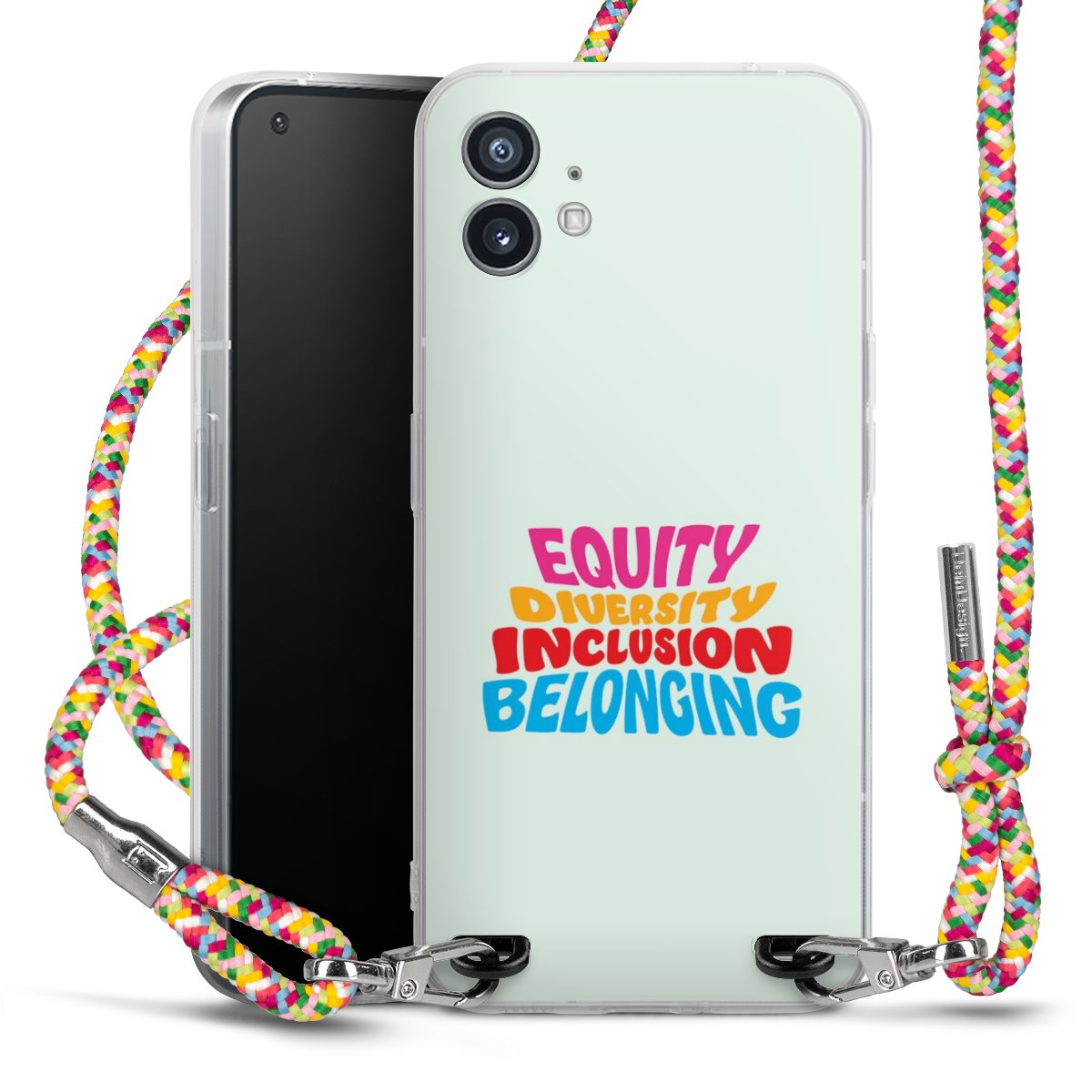 The flexible case is made from a highquality TPU material (thermoplastic Polyurethan). Thanks to its longlasting and break resistant characterisitcs, the case is flexible yet consistent in form and has a great grip and feel. The textile strap made from Polyester gives a chic yet casual accent allowing you to carry your phone like a bag or necklace - a practical gadget perfect for your next adventure. The textile strap is about 1.70 meters long and the length can easily be adjusted through the knots. Our Carry Case is available in Colourful, Mint-Camouflage, Very-Berry, Sahara-Sand and Sparkling-Neon. The ends of the textile strap are covered with metallic end caps to protect them against fraying.