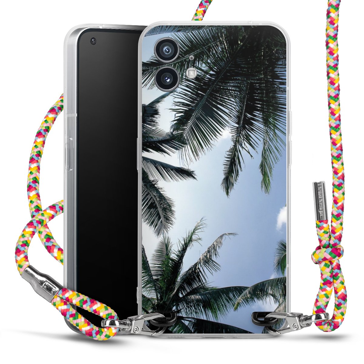 The flexible case is made from a highquality TPU material (thermoplastic Polyurethan). Thanks to its longlasting and break resistant characterisitcs, the case is flexible yet consistent in form and has a great grip and feel. The textile strap made from Polyester gives a chic yet casual accent allowing you to carry your phone like a bag or necklace - a practical gadget perfect for your next adventure. The textile strap is about 1.70 meters long and the length can easily be adjusted through the knots. Our Carry Case is available in Colourful, Mint-Camouflage, Very-Berry, Sahara-Sand and Sparkling-Neon. The ends of the textile strap are covered with metallic end caps to protect them against fraying.