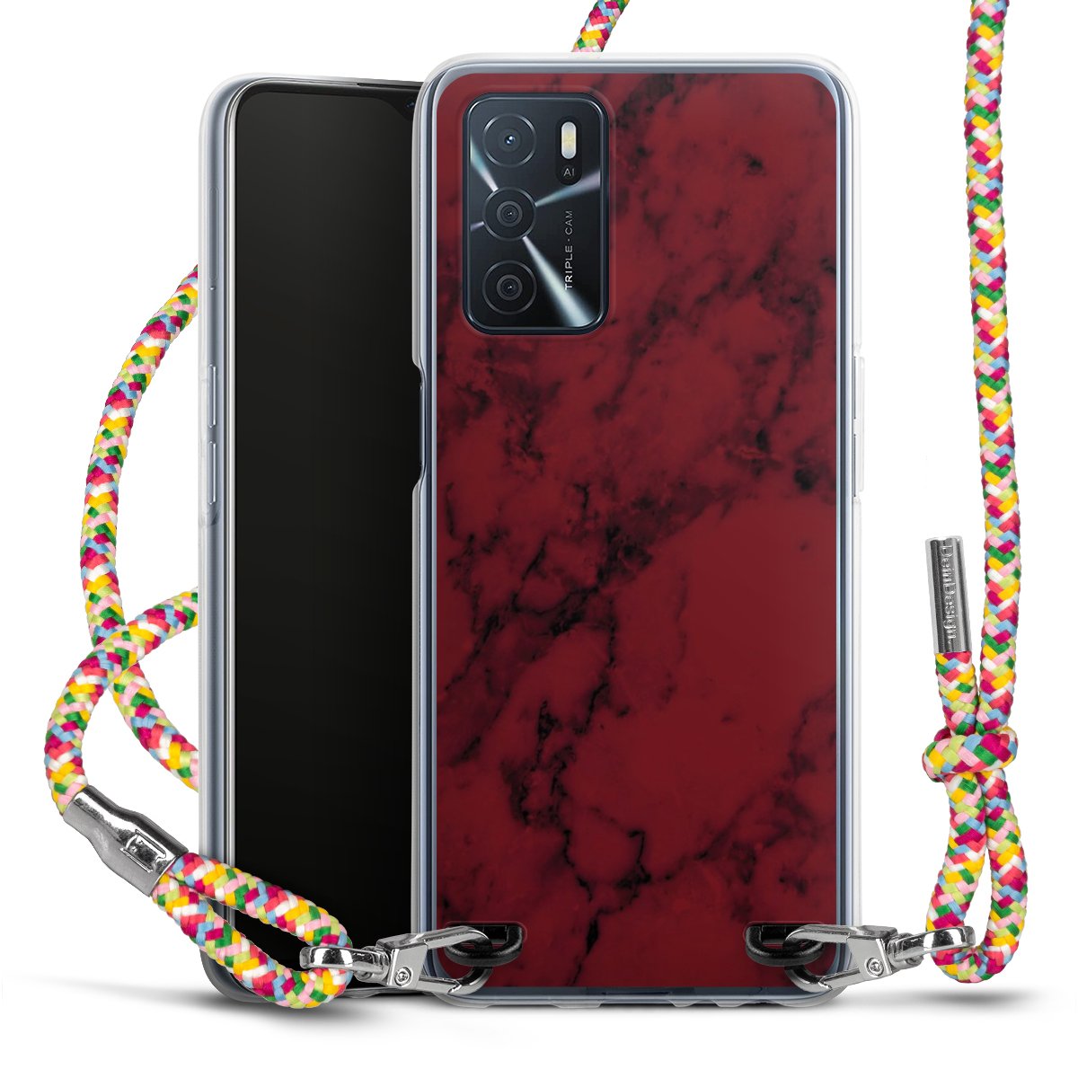 The flexible case is made from a highquality TPU material (thermoplastic Polyurethan). Thanks to its longlasting and break resistant characterisitcs, the case is flexible yet consistent in form and has a great grip and feel. The textile strap made from Polyester gives a chic yet casual accent allowing you to carry your phone like a bag or necklace - a practical gadget perfect for your next adventure. The textile strap is about 1.70 meters long and the length can easily be adjusted through the knots. Our Carry Case is available in Colourful, Mint-Camouflage, Very-Berry, Sahara-Sand and Sparkling-Neon. The ends of the textile strap are covered with metallic end caps to protect them against fraying.