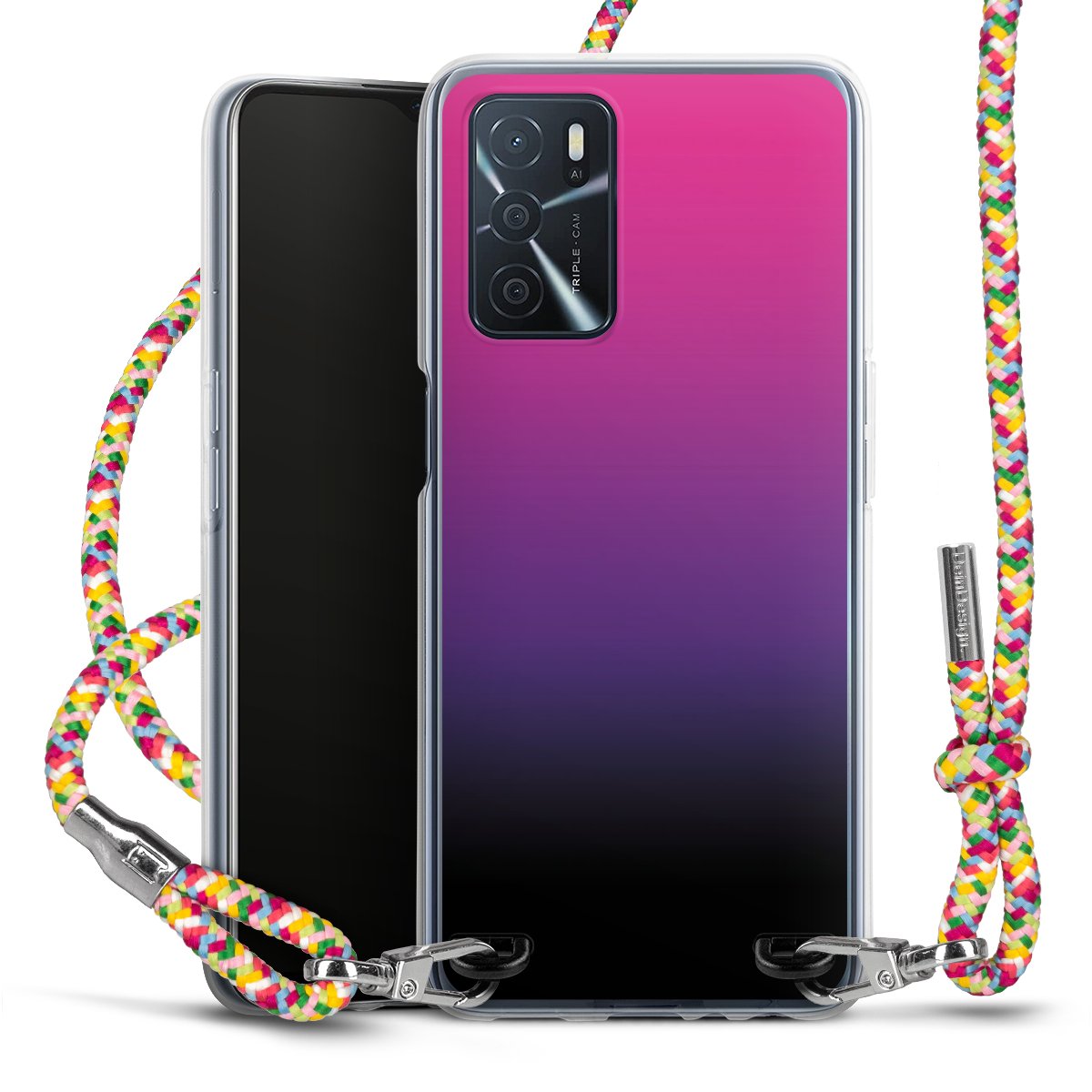 The flexible case is made from a highquality TPU material (thermoplastic Polyurethan). Thanks to its longlasting and break resistant characterisitcs, the case is flexible yet consistent in form and has a great grip and feel. The textile strap made from Polyester gives a chic yet casual accent allowing you to carry your phone like a bag or necklace - a practical gadget perfect for your next adventure. The textile strap is about 1.70 meters long and the length can easily be adjusted through the knots. Our Carry Case is available in Colourful, Mint-Camouflage, Very-Berry, Sahara-Sand and Sparkling-Neon. The ends of the textile strap are covered with metallic end caps to protect them against fraying.