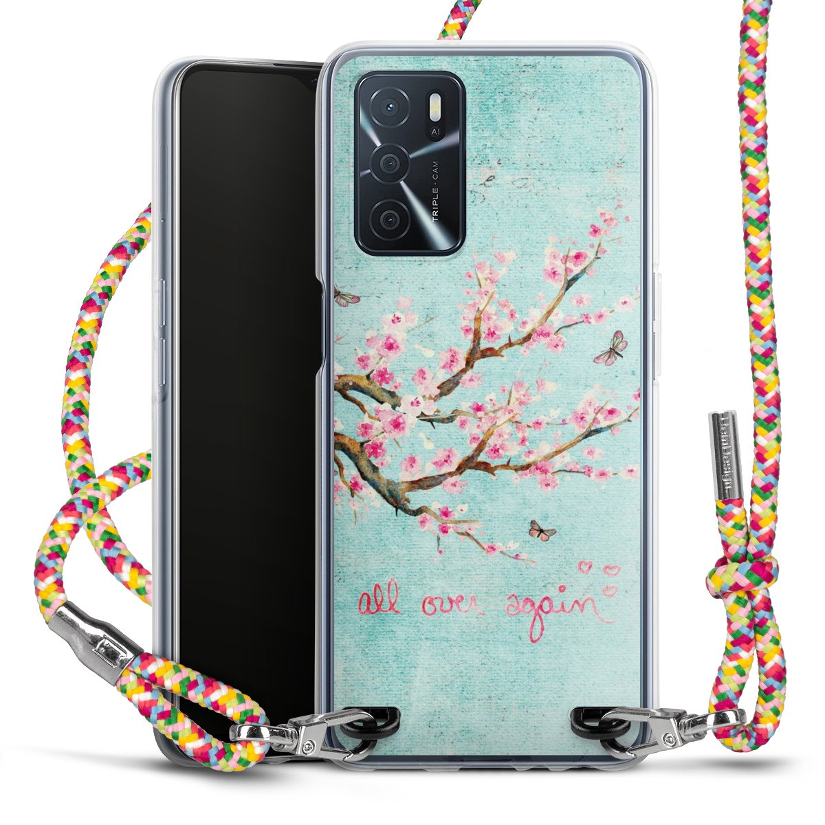 The flexible case is made from a highquality TPU material (thermoplastic Polyurethan). Thanks to its longlasting and break resistant characterisitcs, the case is flexible yet consistent in form and has a great grip and feel. The textile strap made from Polyester gives a chic yet casual accent allowing you to carry your phone like a bag or necklace - a practical gadget perfect for your next adventure. The textile strap is about 1.70 meters long and the length can easily be adjusted through the knots. Our Carry Case is available in Colourful, Mint-Camouflage, Very-Berry, Sahara-Sand and Sparkling-Neon. The ends of the textile strap are covered with metallic end caps to protect them against fraying.