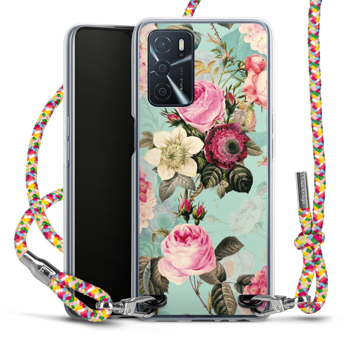 The flexible case is made from a highquality TPU material (thermoplastic Polyurethan). Thanks to its longlasting and break resistant characterisitcs, the case is flexible yet consistent in form and has a great grip and feel. The textile strap made from Polyester gives a chic yet casual accent allowing you to carry your phone like a bag or necklace - a practical gadget perfect for your next adventure. The textile strap is about 1.70 meters long and the length can easily be adjusted through the knots. Our Carry Case is available in Colourful, Mint-Camouflage, Very-Berry, Sahara-Sand and Sparkling-Neon. The ends of the textile strap are covered with metallic end caps to protect them against fraying.