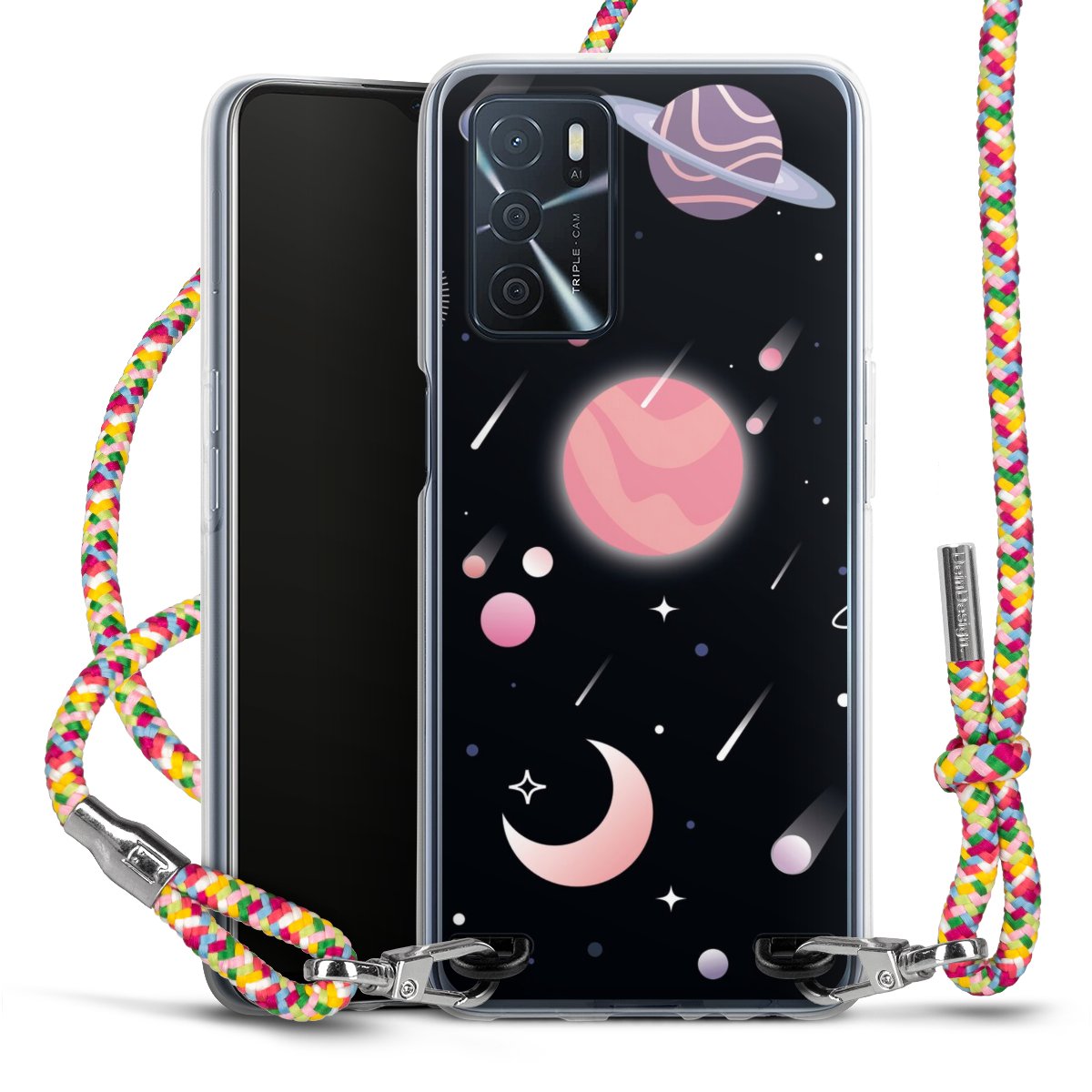 The flexible case is made from a highquality TPU material (thermoplastic Polyurethan). Thanks to its longlasting and break resistant characterisitcs, the case is flexible yet consistent in form and has a great grip and feel. The textile strap made from Polyester gives a chic yet casual accent allowing you to carry your phone like a bag or necklace - a practical gadget perfect for your next adventure. The textile strap is about 1.70 meters long and the length can easily be adjusted through the knots. Our Carry Case is available in Colourful, Mint-Camouflage, Very-Berry, Sahara-Sand and Sparkling-Neon. The ends of the textile strap are covered with metallic end caps to protect them against fraying.