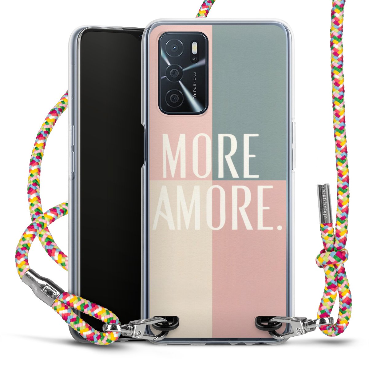 The flexible case is made from a highquality TPU material (thermoplastic Polyurethan). Thanks to its longlasting and break resistant characterisitcs, the case is flexible yet consistent in form and has a great grip and feel. The textile strap made from Polyester gives a chic yet casual accent allowing you to carry your phone like a bag or necklace - a practical gadget perfect for your next adventure. The textile strap is about 1.70 meters long and the length can easily be adjusted through the knots. Our Carry Case is available in Colourful, Mint-Camouflage, Very-Berry, Sahara-Sand and Sparkling-Neon. The ends of the textile strap are covered with metallic end caps to protect them against fraying.