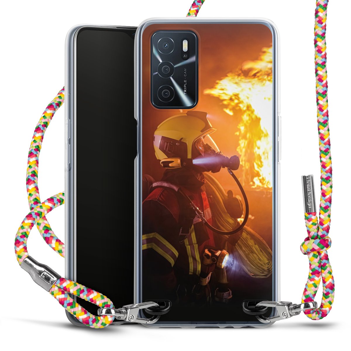 The flexible case is made from a highquality TPU material (thermoplastic Polyurethan). Thanks to its longlasting and break resistant characterisitcs, the case is flexible yet consistent in form and has a great grip and feel. The textile strap made from Polyester gives a chic yet casual accent allowing you to carry your phone like a bag or necklace - a practical gadget perfect for your next adventure. The textile strap is about 1.70 meters long and the length can easily be adjusted through the knots. Our Carry Case is available in Colourful, Mint-Camouflage, Very-Berry, Sahara-Sand and Sparkling-Neon. The ends of the textile strap are covered with metallic end caps to protect them against fraying.