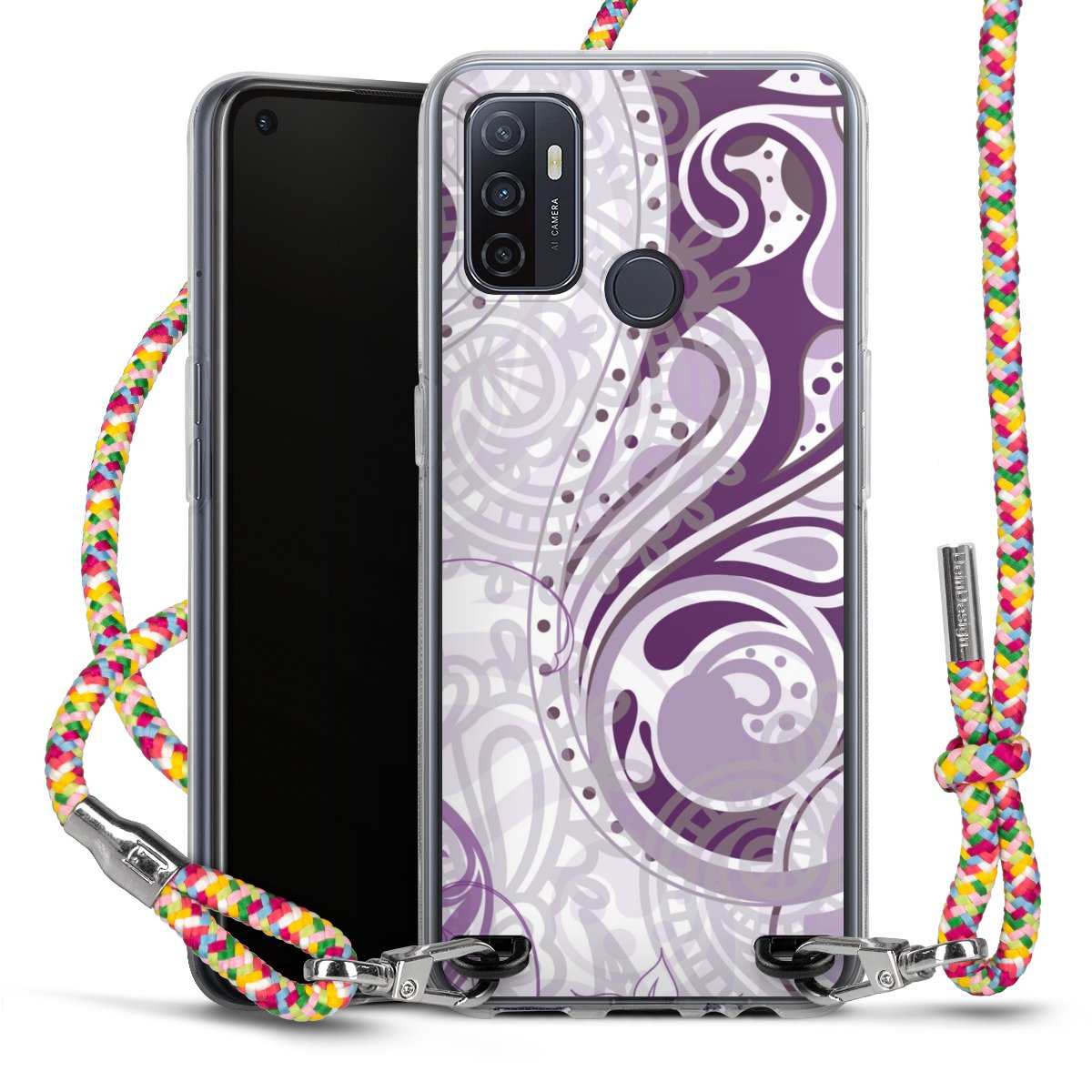 The flexible case is made from a highquality TPU material (thermoplastic Polyurethan). Thanks to its longlasting and break resistant characterisitcs, the case is flexible yet consistent in form and has a great grip and feel. The textile strap made from Polyester gives a chic yet casual accent allowing you to carry your phone like a bag or necklace - a practical gadget perfect for your next adventure. The textile strap is about 1.70 meters long and the length can easily be adjusted through the knots. Our Carry Case is available in Colourful, Mint-Camouflage, Very-Berry, Sahara-Sand and Sparkling-Neon. The ends of the textile strap are covered with metallic end caps to protect them against fraying.