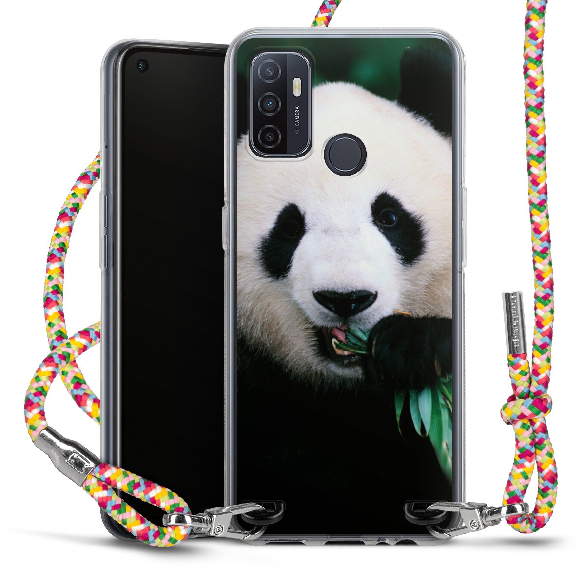 The flexible case is made from a highquality TPU material (thermoplastic Polyurethan). Thanks to its longlasting and break resistant characterisitcs, the case is flexible yet consistent in form and has a great grip and feel. The textile strap made from Polyester gives a chic yet casual accent allowing you to carry your phone like a bag or necklace - a practical gadget perfect for your next adventure. The textile strap is about 1.70 meters long and the length can easily be adjusted through the knots. Our Carry Case is available in Colourful, Mint-Camouflage, Very-Berry, Sahara-Sand and Sparkling-Neon. The ends of the textile strap are covered with metallic end caps to protect them against fraying.