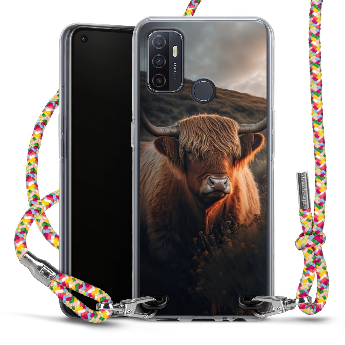 The flexible case is made from a highquality TPU material (thermoplastic Polyurethan). Thanks to its longlasting and break resistant characterisitcs, the case is flexible yet consistent in form and has a great grip and feel. The textile strap made from Polyester gives a chic yet casual accent allowing you to carry your phone like a bag or necklace - a practical gadget perfect for your next adventure. The textile strap is about 1.70 meters long and the length can easily be adjusted through the knots. Our Carry Case is available in Colourful, Mint-Camouflage, Very-Berry, Sahara-Sand and Sparkling-Neon. The ends of the textile strap are covered with metallic end caps to protect them against fraying.