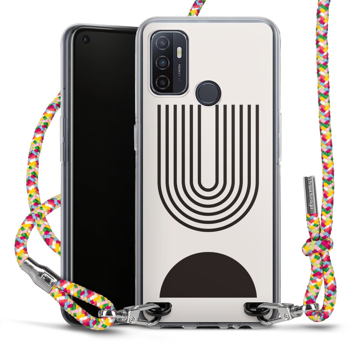 The flexible case is made from a highquality TPU material (thermoplastic Polyurethan). Thanks to its longlasting and break resistant characterisitcs, the case is flexible yet consistent in form and has a great grip and feel. The textile strap made from Polyester gives a chic yet casual accent allowing you to carry your phone like a bag or necklace - a practical gadget perfect for your next adventure. The textile strap is about 1.70 meters long and the length can easily be adjusted through the knots. Our Carry Case is available in Colourful, Mint-Camouflage, Very-Berry, Sahara-Sand and Sparkling-Neon. The ends of the textile strap are covered with metallic end caps to protect them against fraying.