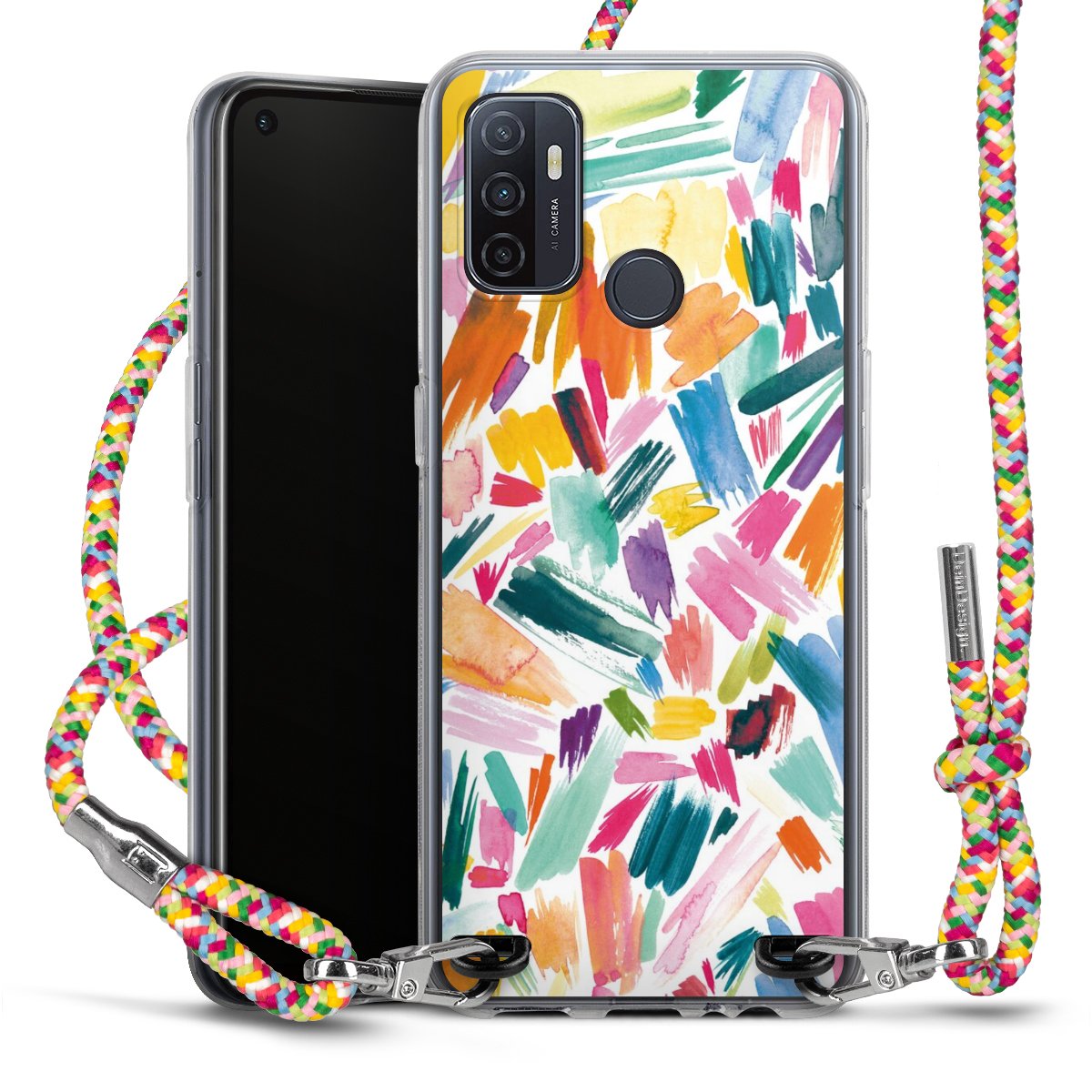 The flexible case is made from a highquality TPU material (thermoplastic Polyurethan). Thanks to its longlasting and break resistant characterisitcs, the case is flexible yet consistent in form and has a great grip and feel. The textile strap made from Polyester gives a chic yet casual accent allowing you to carry your phone like a bag or necklace - a practical gadget perfect for your next adventure. The textile strap is about 1.70 meters long and the length can easily be adjusted through the knots. Our Carry Case is available in Colourful, Mint-Camouflage, Very-Berry, Sahara-Sand and Sparkling-Neon. The ends of the textile strap are covered with metallic end caps to protect them against fraying.