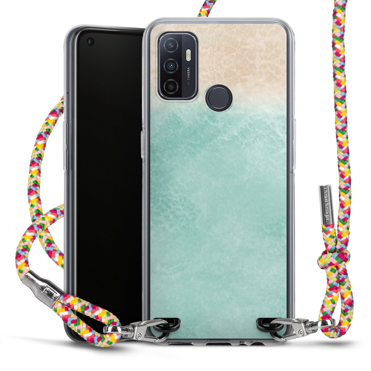The flexible case is made from a highquality TPU material (thermoplastic Polyurethan). Thanks to its longlasting and break resistant characterisitcs, the case is flexible yet consistent in form and has a great grip and feel. The textile strap made from Polyester gives a chic yet casual accent allowing you to carry your phone like a bag or necklace - a practical gadget perfect for your next adventure. The textile strap is about 1.70 meters long and the length can easily be adjusted through the knots. Our Carry Case is available in Colourful, Mint-Camouflage, Very-Berry, Sahara-Sand and Sparkling-Neon. The ends of the textile strap are covered with metallic end caps to protect them against fraying.