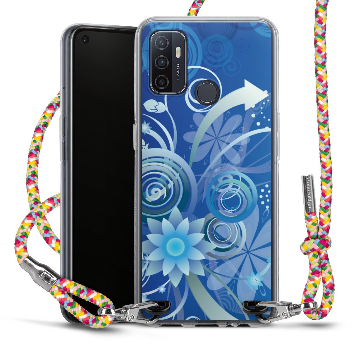 The flexible case is made from a highquality TPU material (thermoplastic Polyurethan). Thanks to its longlasting and break resistant characterisitcs, the case is flexible yet consistent in form and has a great grip and feel. The textile strap made from Polyester gives a chic yet casual accent allowing you to carry your phone like a bag or necklace - a practical gadget perfect for your next adventure. The textile strap is about 1.70 meters long and the length can easily be adjusted through the knots. Our Carry Case is available in Colourful, Mint-Camouflage, Very-Berry, Sahara-Sand and Sparkling-Neon. The ends of the textile strap are covered with metallic end caps to protect them against fraying.