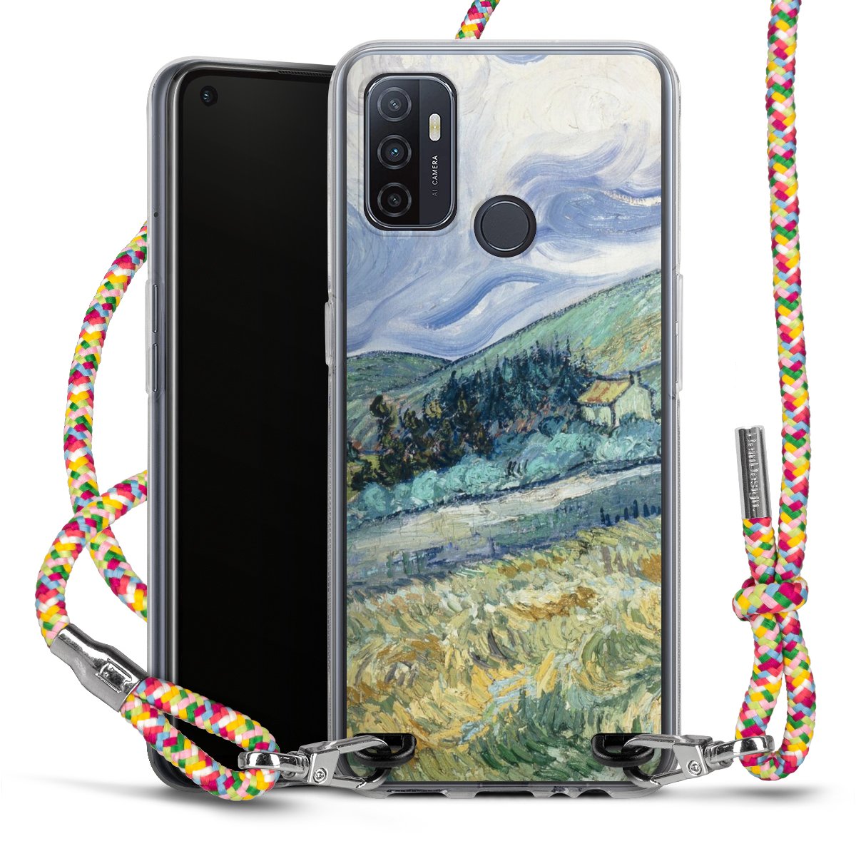 The flexible case is made from a highquality TPU material (thermoplastic Polyurethan). Thanks to its longlasting and break resistant characterisitcs, the case is flexible yet consistent in form and has a great grip and feel. The textile strap made from Polyester gives a chic yet casual accent allowing you to carry your phone like a bag or necklace - a practical gadget perfect for your next adventure. The textile strap is about 1.70 meters long and the length can easily be adjusted through the knots. Our Carry Case is available in Colourful, Mint-Camouflage, Very-Berry, Sahara-Sand and Sparkling-Neon. The ends of the textile strap are covered with metallic end caps to protect them against fraying.