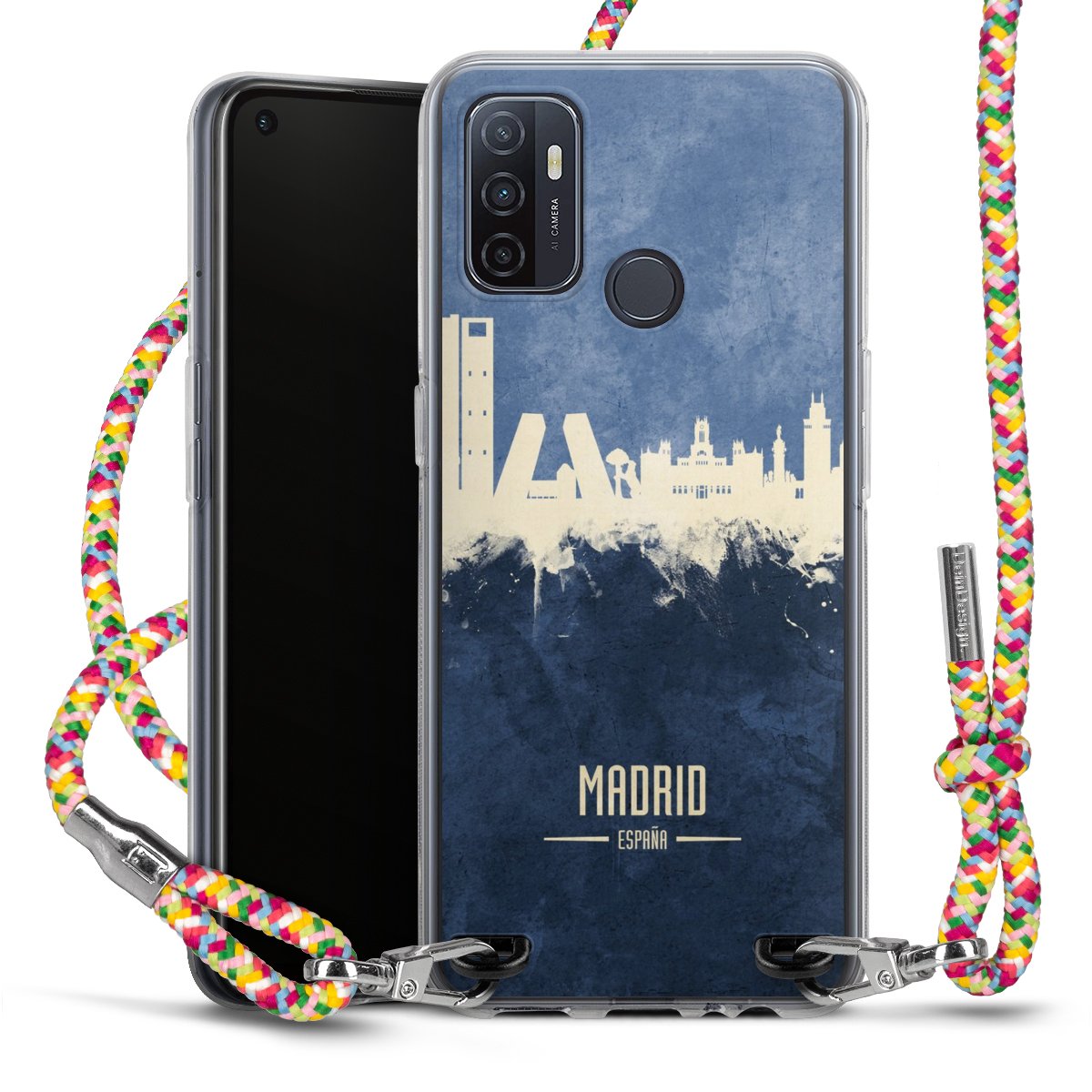 The flexible case is made from a highquality TPU material (thermoplastic Polyurethan). Thanks to its longlasting and break resistant characterisitcs, the case is flexible yet consistent in form and has a great grip and feel. The textile strap made from Polyester gives a chic yet casual accent allowing you to carry your phone like a bag or necklace - a practical gadget perfect for your next adventure. The textile strap is about 1.70 meters long and the length can easily be adjusted through the knots. Our Carry Case is available in Colourful, Mint-Camouflage, Very-Berry, Sahara-Sand and Sparkling-Neon. The ends of the textile strap are covered with metallic end caps to protect them against fraying.