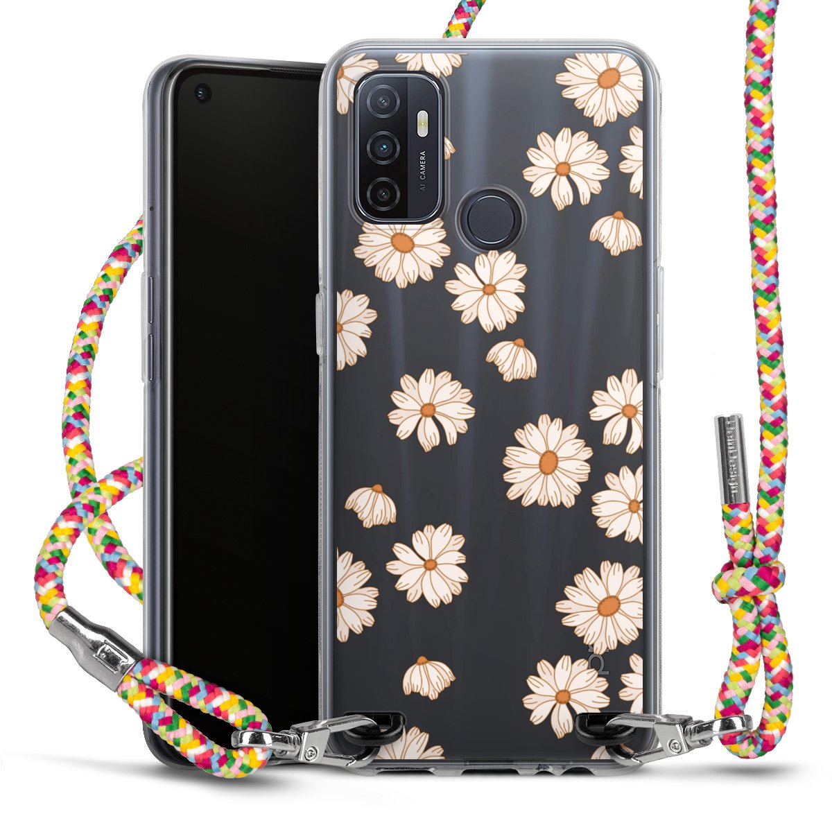 The flexible case is made from a highquality TPU material (thermoplastic Polyurethan). Thanks to its longlasting and break resistant characterisitcs, the case is flexible yet consistent in form and has a great grip and feel. The textile strap made from Polyester gives a chic yet casual accent allowing you to carry your phone like a bag or necklace - a practical gadget perfect for your next adventure. The textile strap is about 1.70 meters long and the length can easily be adjusted through the knots. Our Carry Case is available in Colourful, Mint-Camouflage, Very-Berry, Sahara-Sand and Sparkling-Neon. The ends of the textile strap are covered with metallic end caps to protect them against fraying.