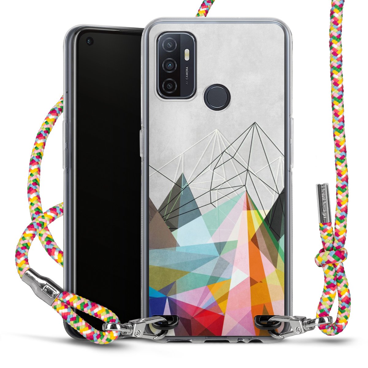 The flexible case is made from a highquality TPU material (thermoplastic Polyurethan). Thanks to its longlasting and break resistant characterisitcs, the case is flexible yet consistent in form and has a great grip and feel. The textile strap made from Polyester gives a chic yet casual accent allowing you to carry your phone like a bag or necklace - a practical gadget perfect for your next adventure. The textile strap is about 1.70 meters long and the length can easily be adjusted through the knots. Our Carry Case is available in Colourful, Mint-Camouflage, Very-Berry, Sahara-Sand and Sparkling-Neon. The ends of the textile strap are covered with metallic end caps to protect them against fraying.