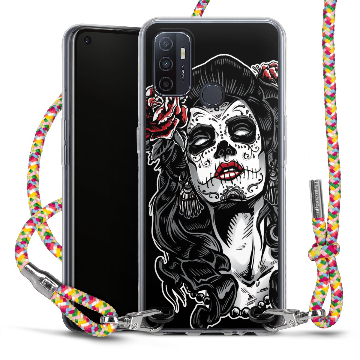 The flexible case is made from a highquality TPU material (thermoplastic Polyurethan). Thanks to its longlasting and break resistant characterisitcs, the case is flexible yet consistent in form and has a great grip and feel. The textile strap made from Polyester gives a chic yet casual accent allowing you to carry your phone like a bag or necklace - a practical gadget perfect for your next adventure. The textile strap is about 1.70 meters long and the length can easily be adjusted through the knots. Our Carry Case is available in Colourful, Mint-Camouflage, Very-Berry, Sahara-Sand and Sparkling-Neon. The ends of the textile strap are covered with metallic end caps to protect them against fraying.