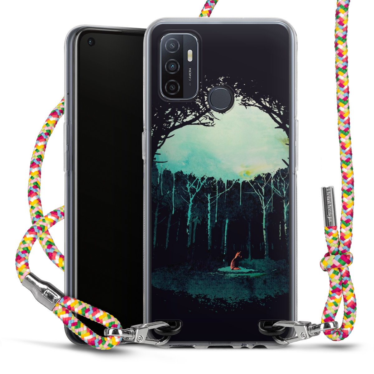 The flexible case is made from a highquality TPU material (thermoplastic Polyurethan). Thanks to its longlasting and break resistant characterisitcs, the case is flexible yet consistent in form and has a great grip and feel. The textile strap made from Polyester gives a chic yet casual accent allowing you to carry your phone like a bag or necklace - a practical gadget perfect for your next adventure. The textile strap is about 1.70 meters long and the length can easily be adjusted through the knots. Our Carry Case is available in Colourful, Mint-Camouflage, Very-Berry, Sahara-Sand and Sparkling-Neon. The ends of the textile strap are covered with metallic end caps to protect them against fraying.